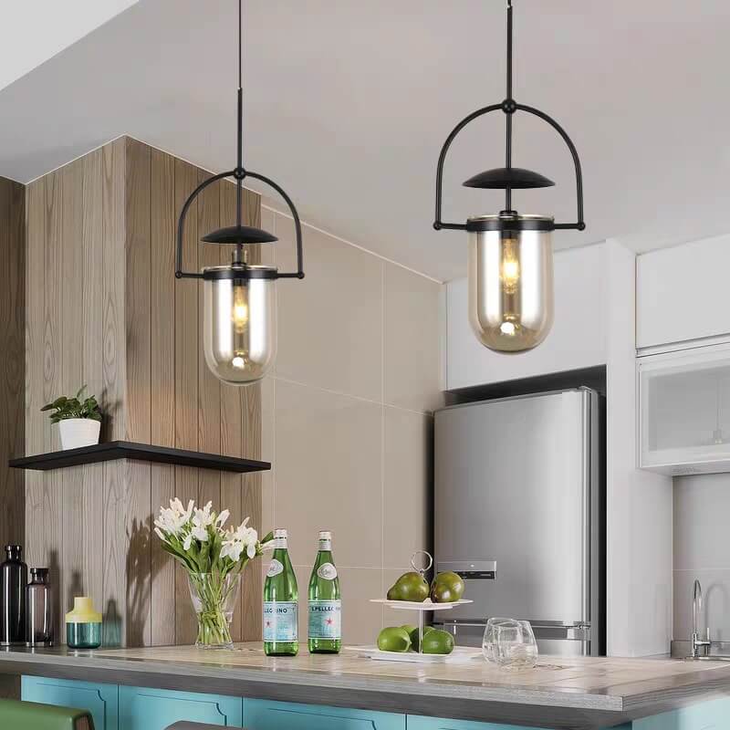 Modern Simplicity Cylinder Half Circle Iron Glass 1-Light Pendant Light For Living Room