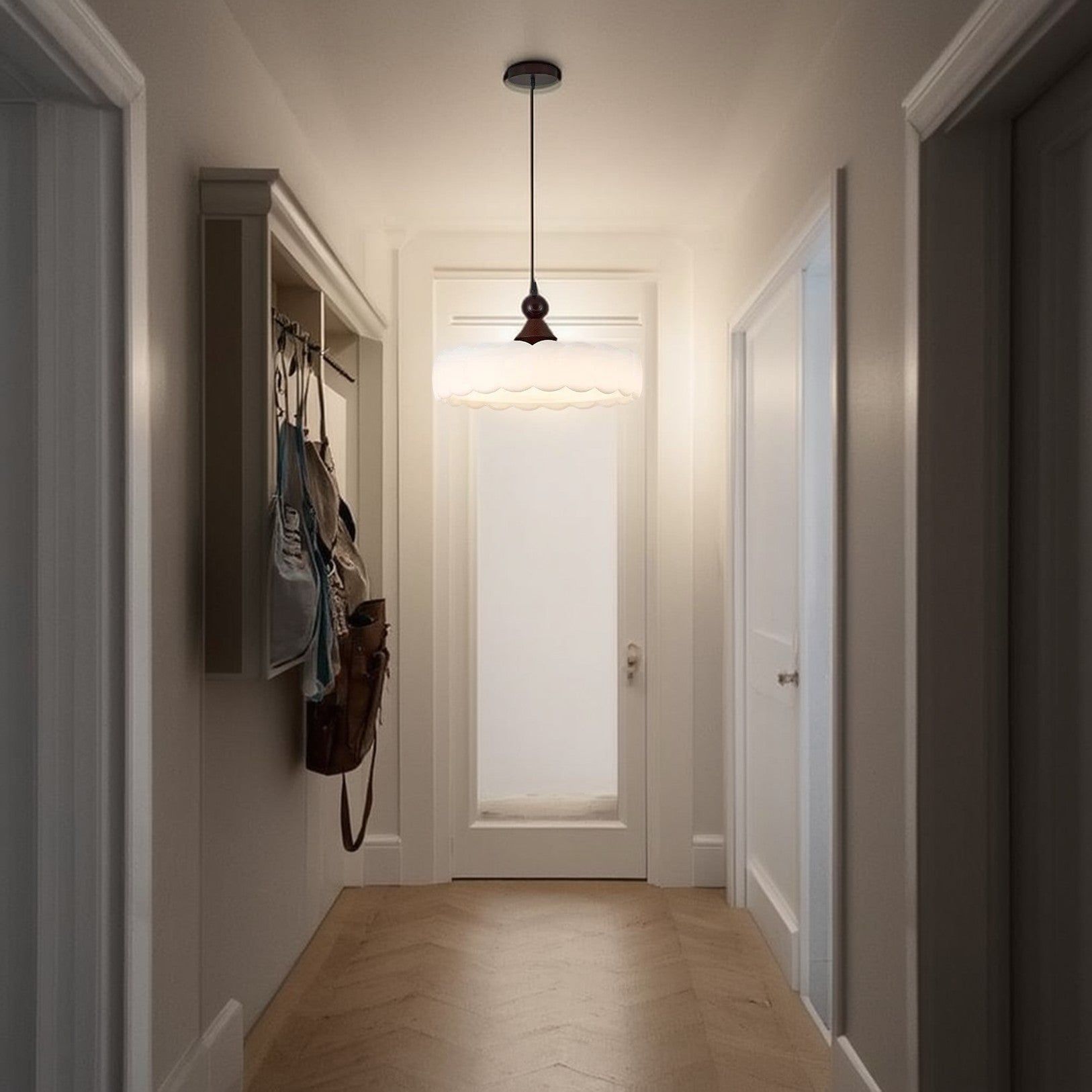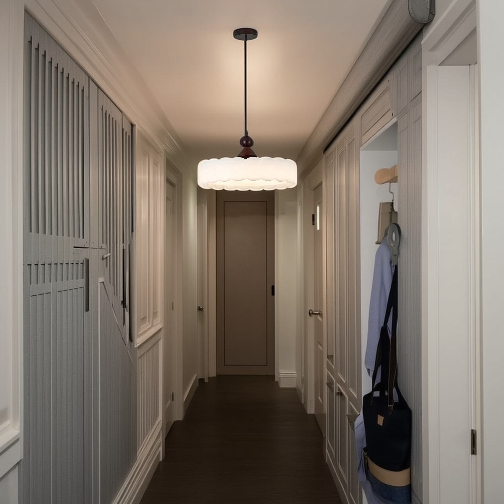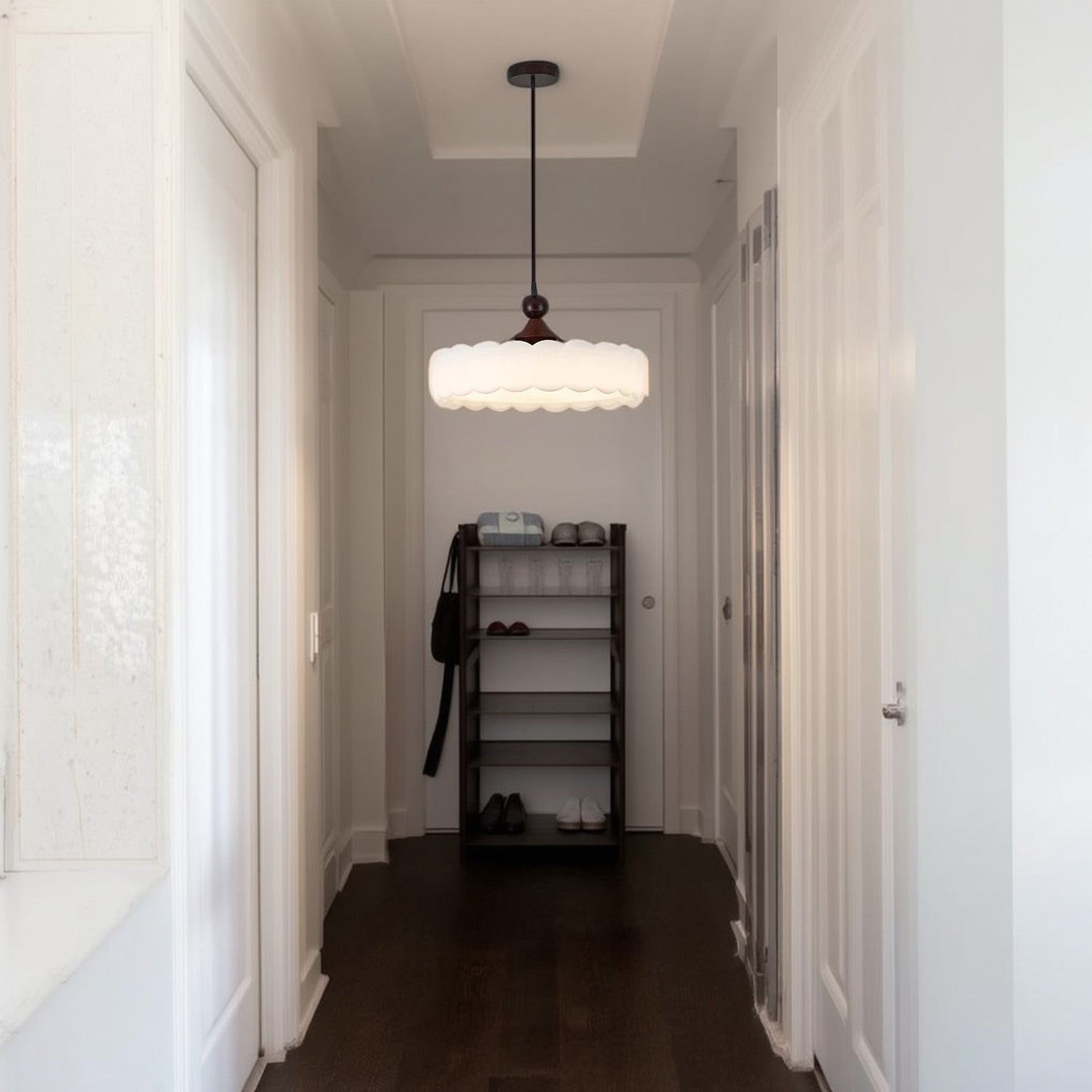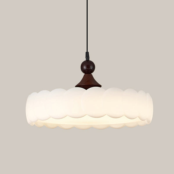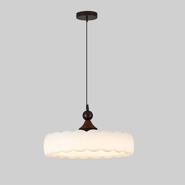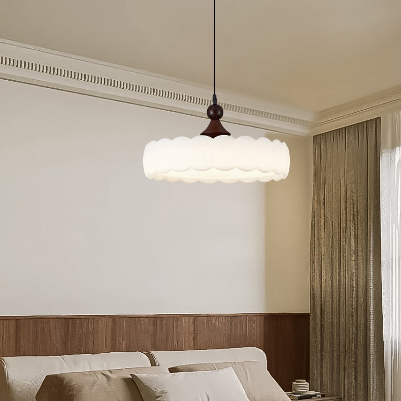 Modern Simplicity Cylindrical Cloud Acrylic White Wax Wood Iron LED Pendant Light For Bedroom