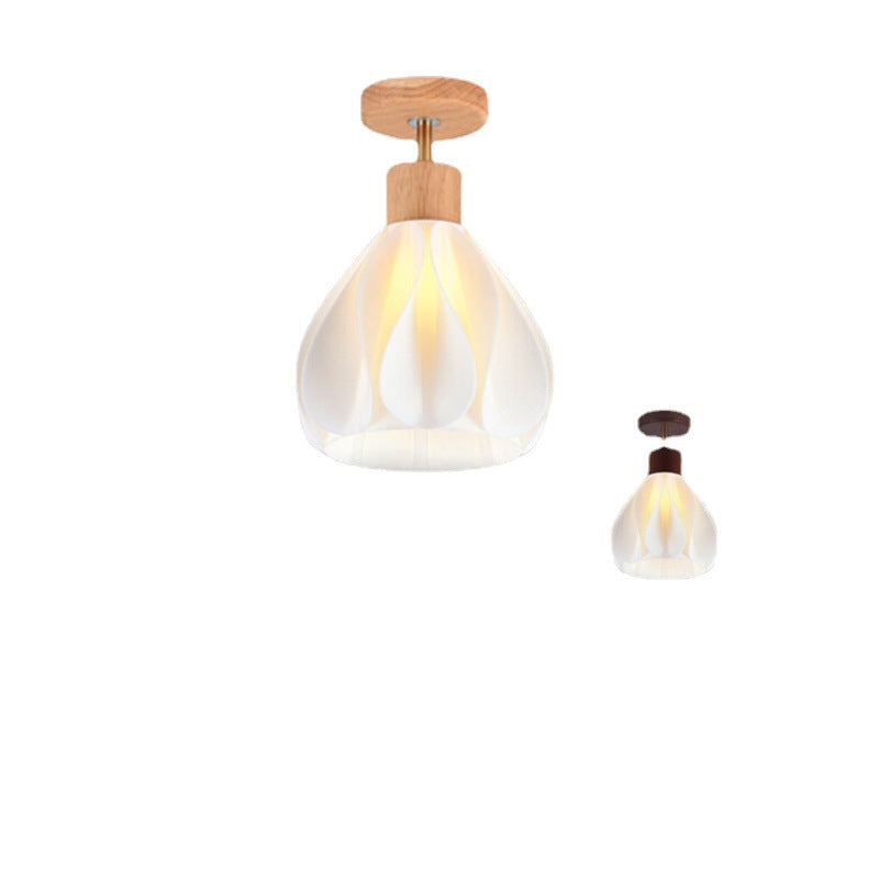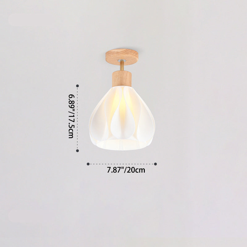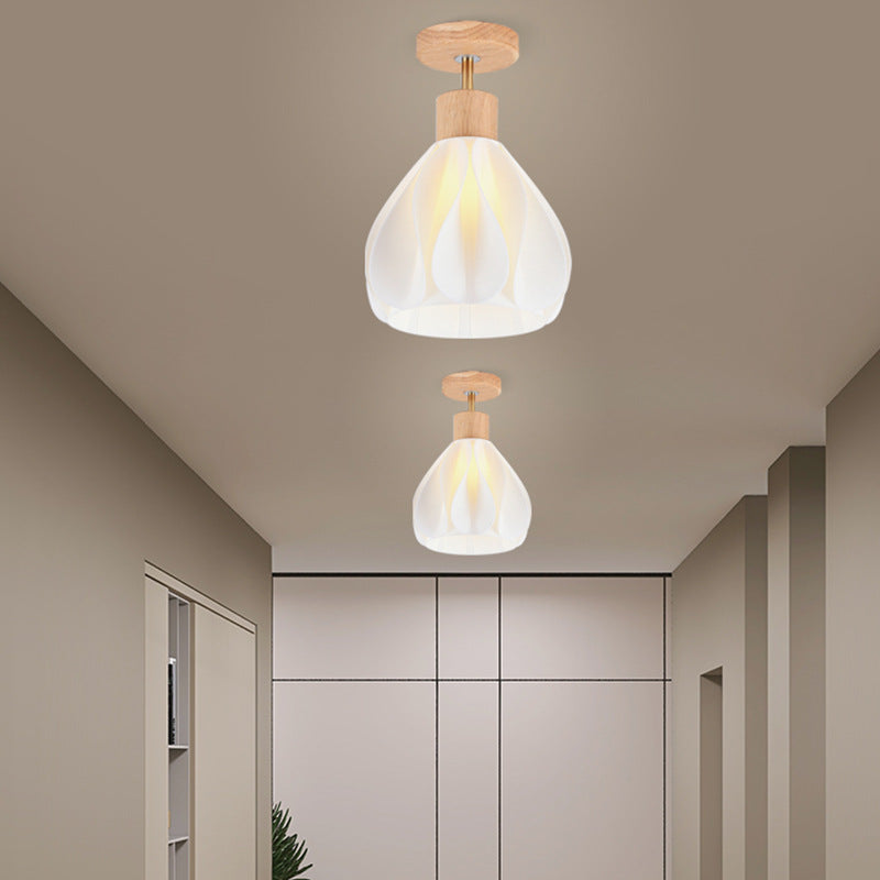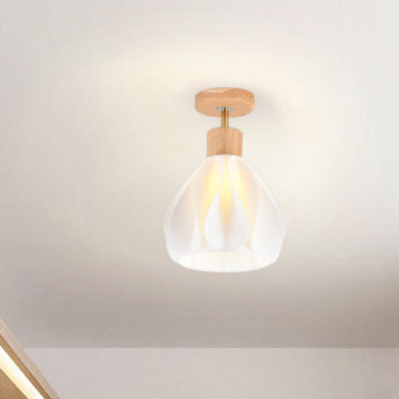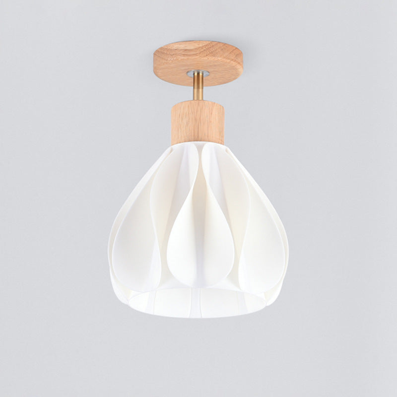 Modern Simplicity Dome Rubberwood ABS 1-Light Semi-Flush Mount Ceiling Light For Hallway