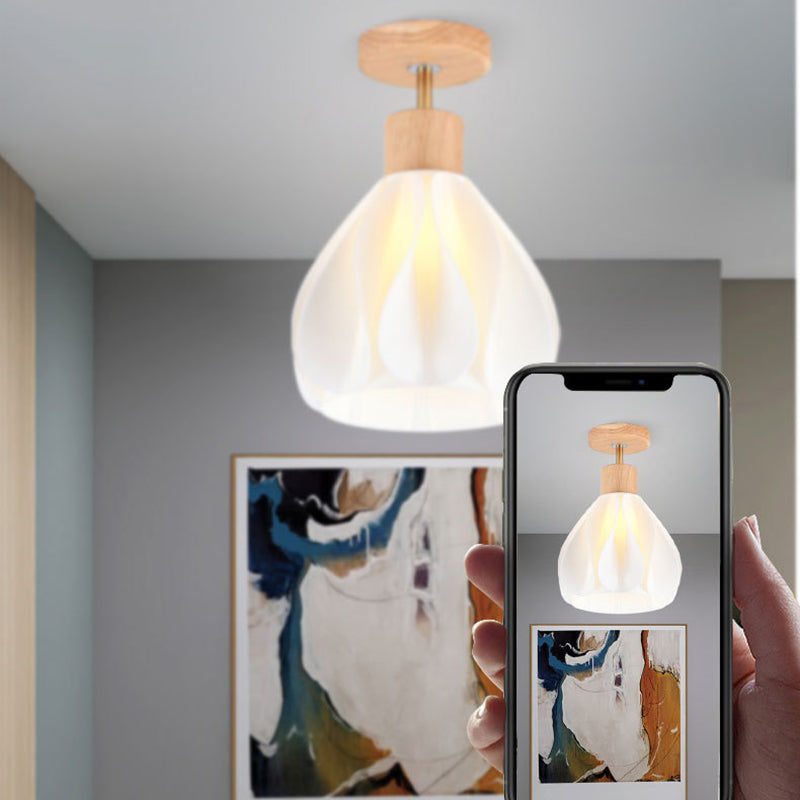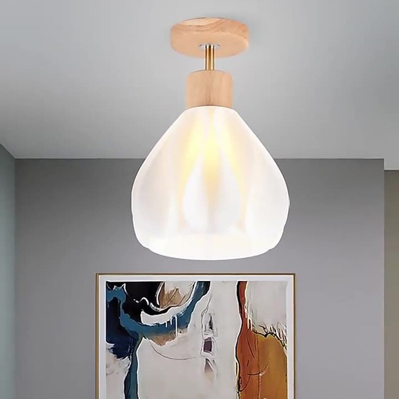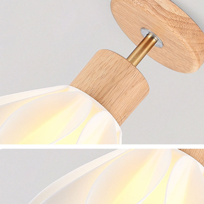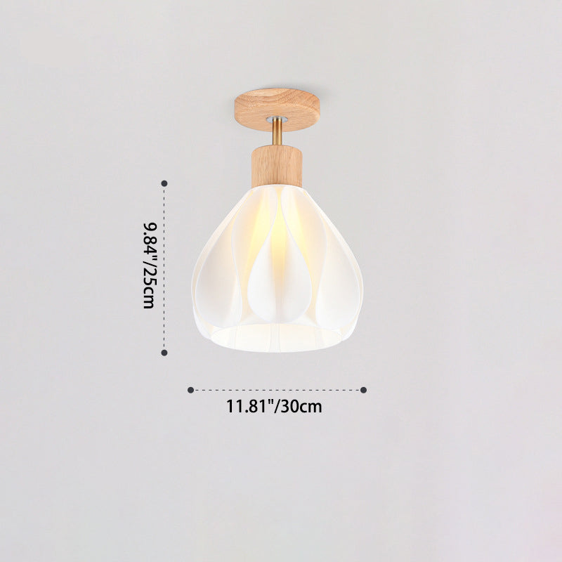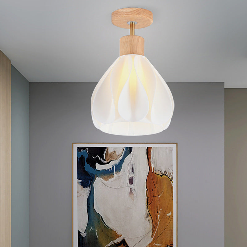 Modern Simplicity Dome Rubberwood ABS 1-Light Semi-Flush Mount Ceiling Light For Hallway