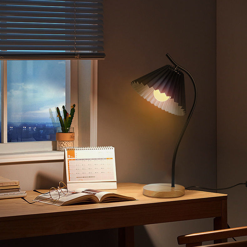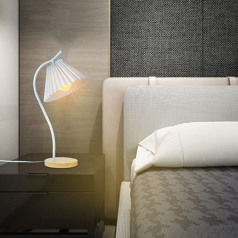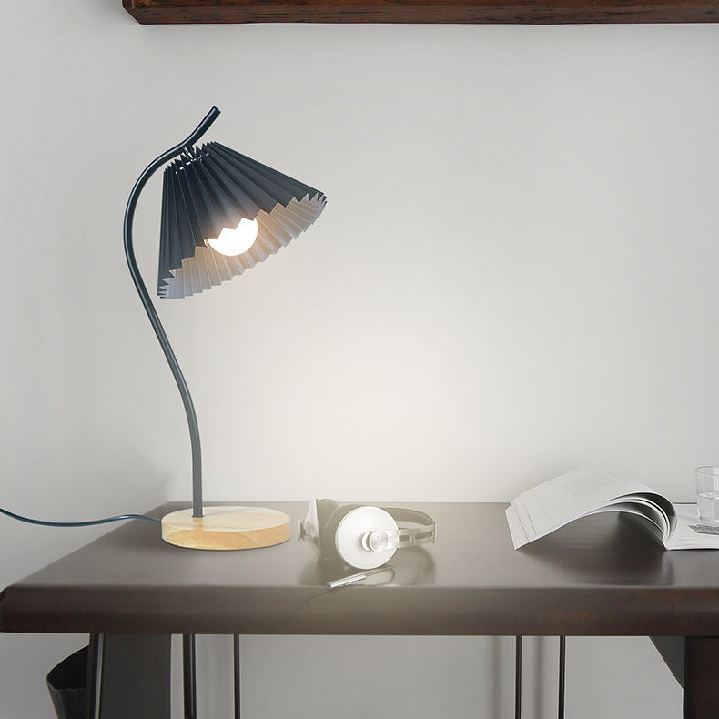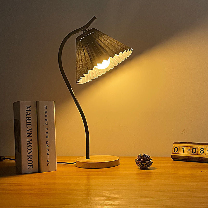 Modern Simplicity Frustum Cone Iron Fabric Solid Wood 1-Light Table Lamp For Bedroom