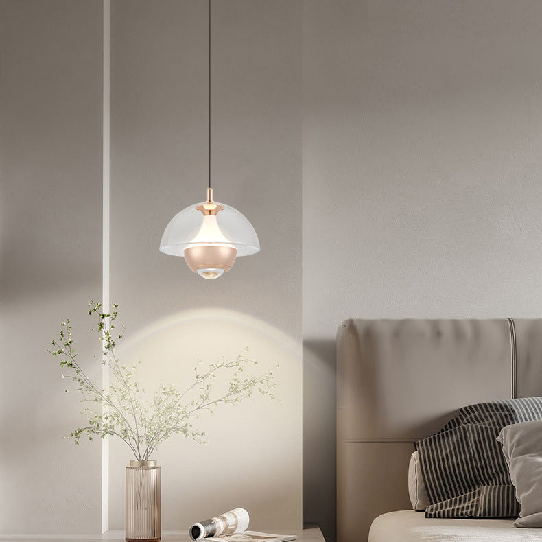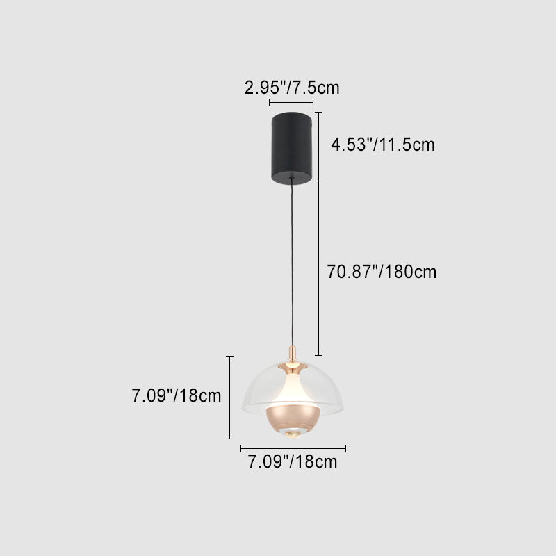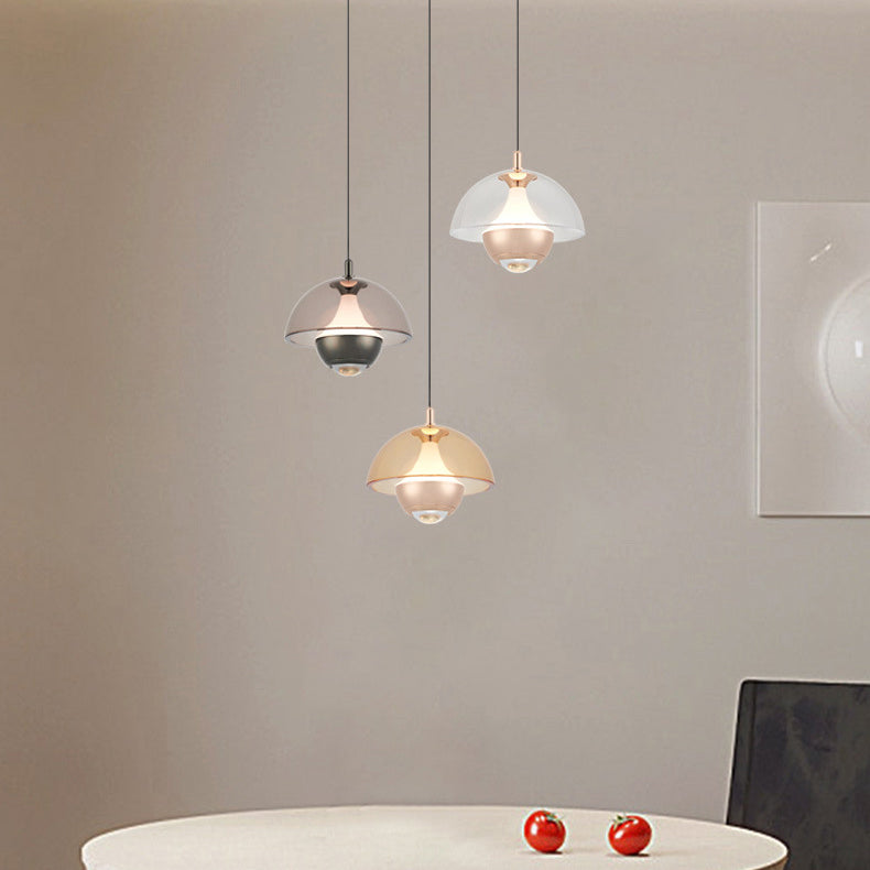 Modern Simplicity Hemisphere Liftable Aluminium Acrylic LED Pendant Light For Dining Room