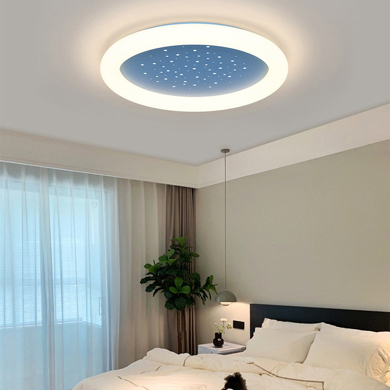 Modern Simplicity Iron Acrylic Round Starry Sky LED Flush Mount Ceiling Light For Bedroom