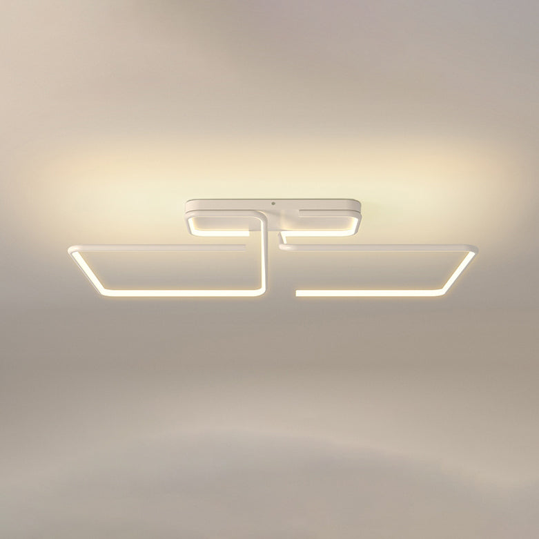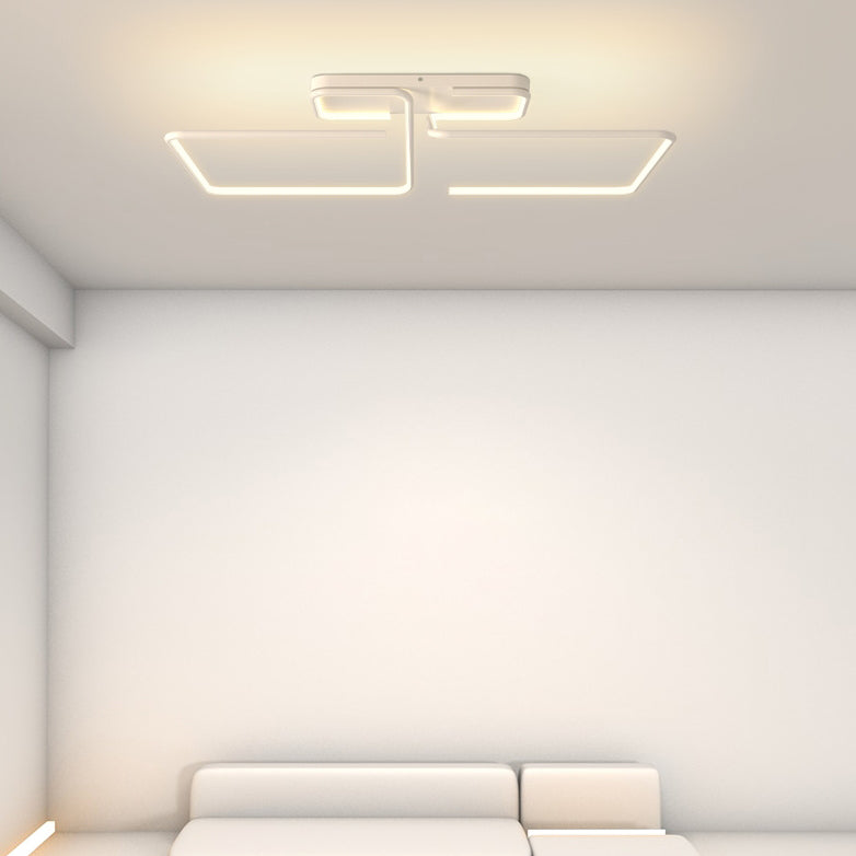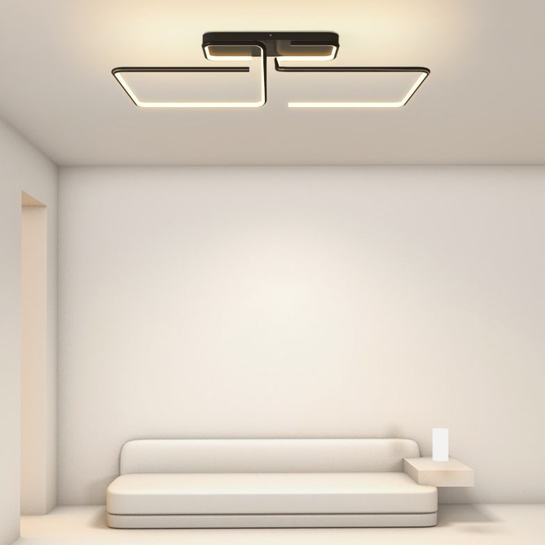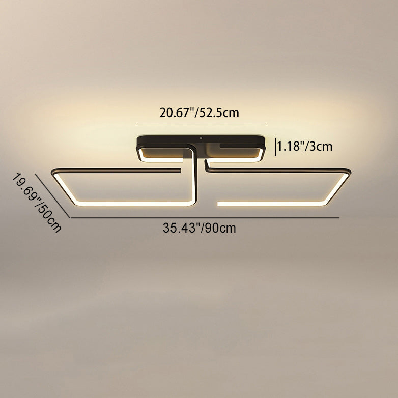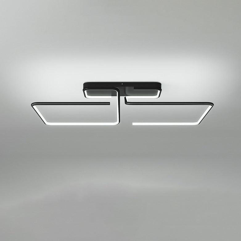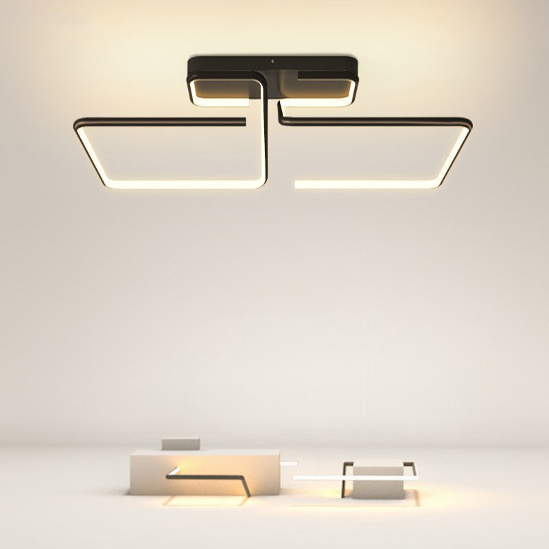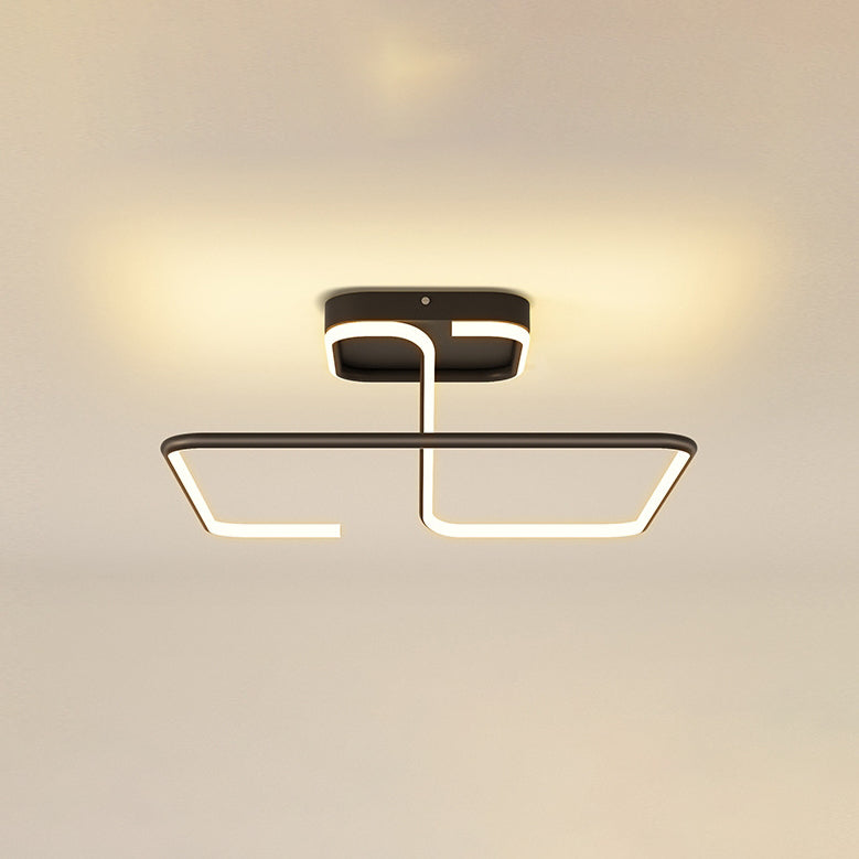 Modern Simplicity Iron Aluminum Silica Rectangular Geometric Line LED Semi-Flush Mount Ceiling Light For Living Room