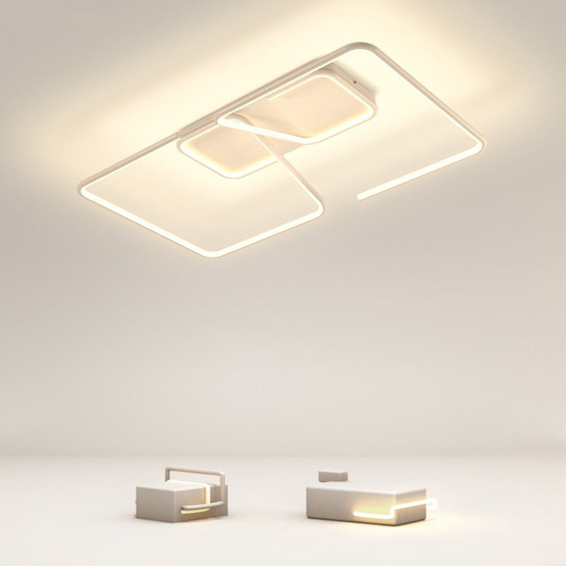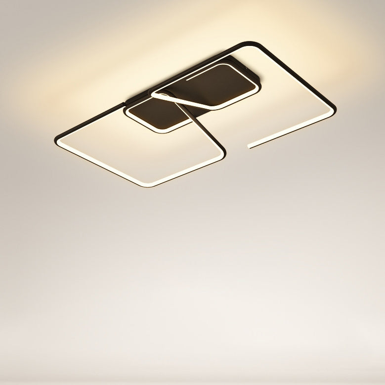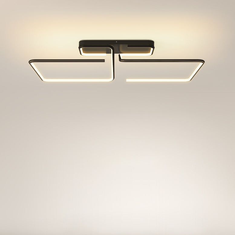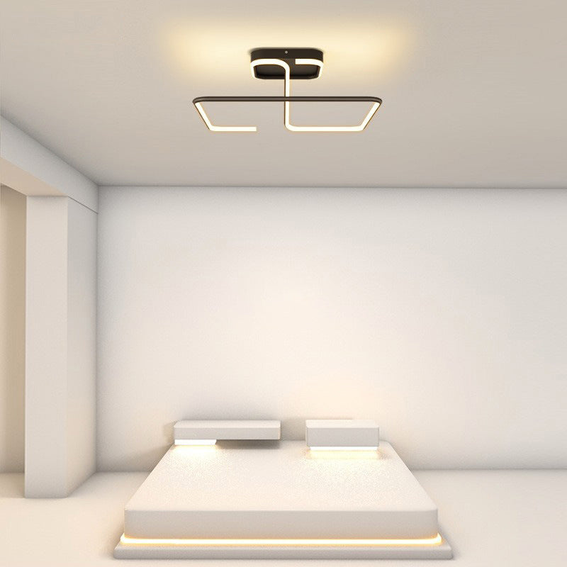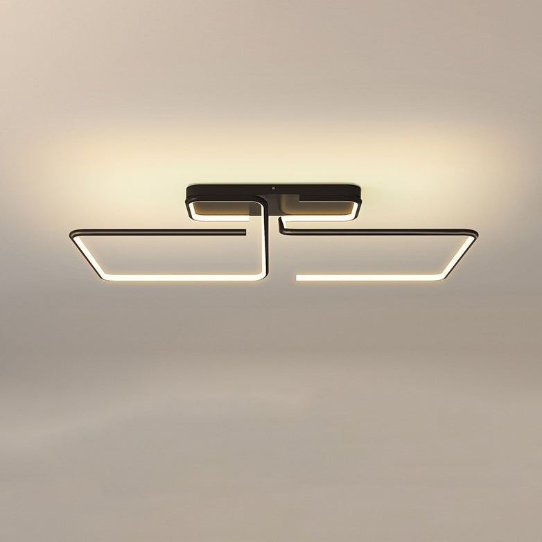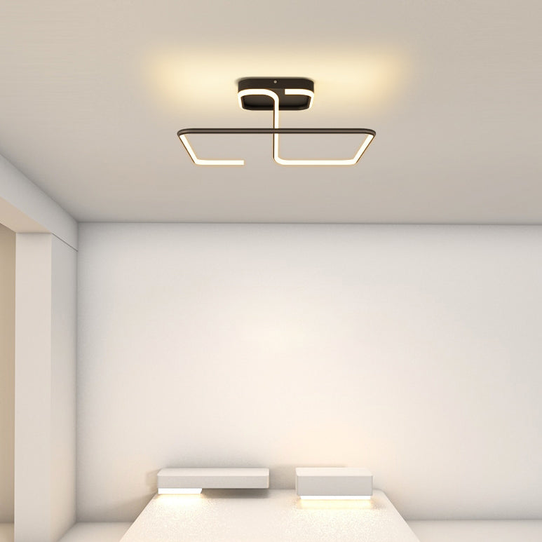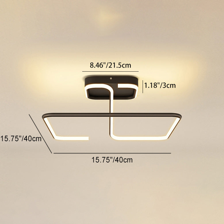 Modern Simplicity Iron Aluminum Silica Rectangular Geometric Line LED Semi-Flush Mount Ceiling Light For Living Room