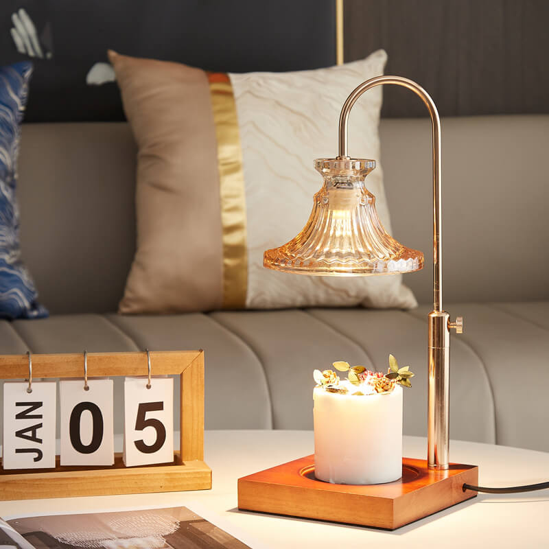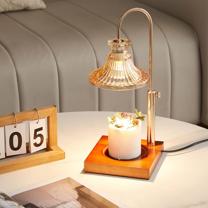 Modern Simplicity Iron Glass Flower Shape 1-Light Melting Wax Table Lamp For Bedroom