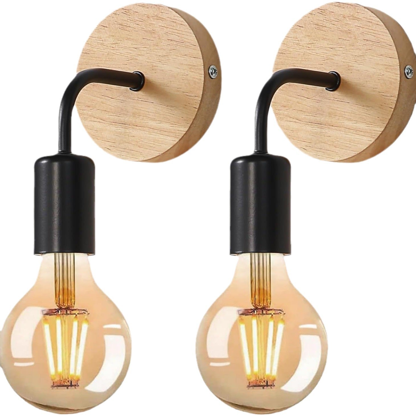 Modern Simplicity Iron Wood Bulb 1-Light Wall Sconce Lamp For Bedroom