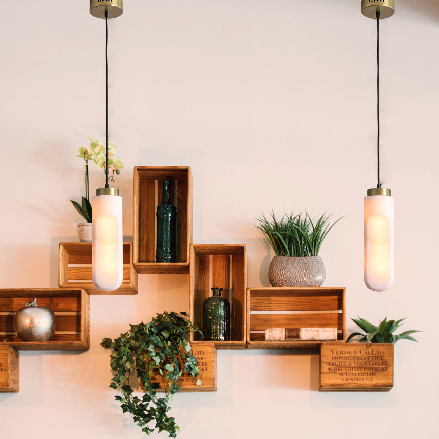 Modern Simplicity Marble Metal Cylinder Strip LED Pendant Light For Bedside