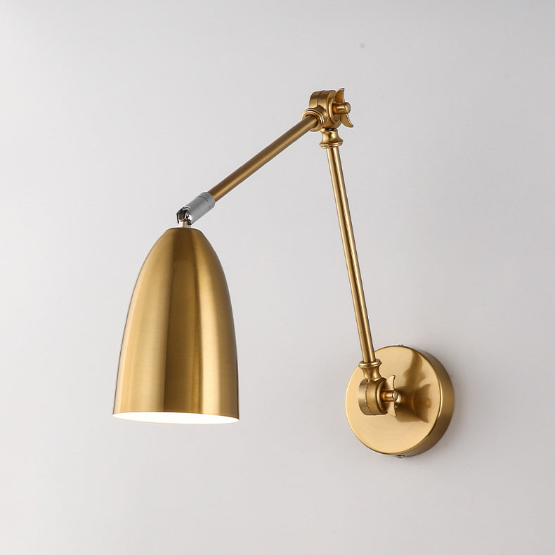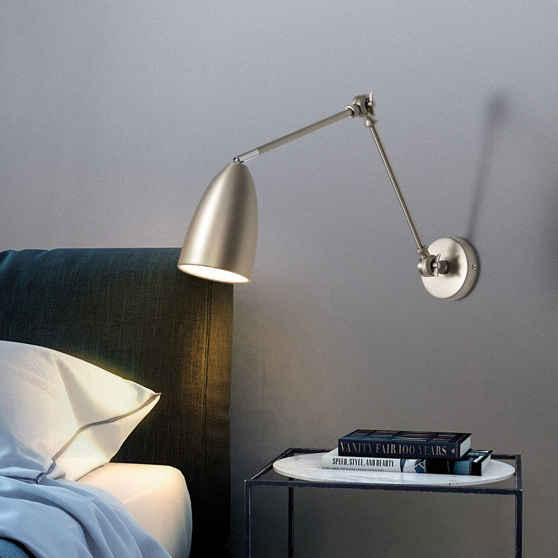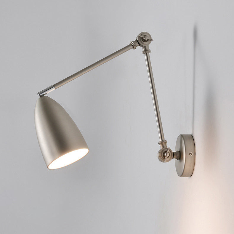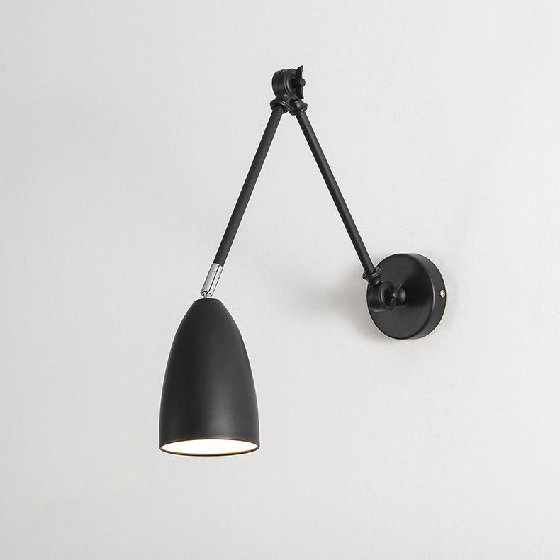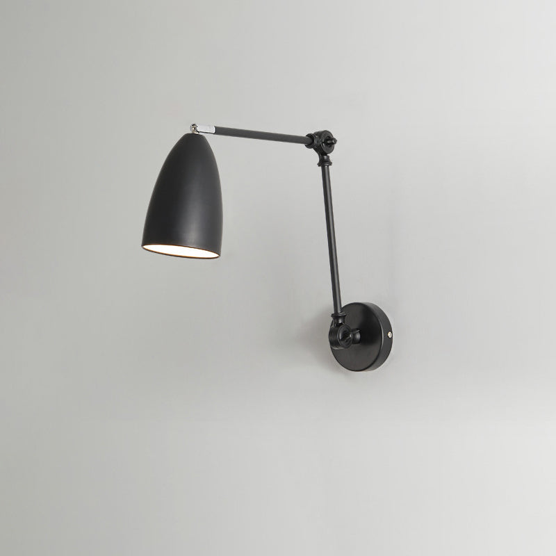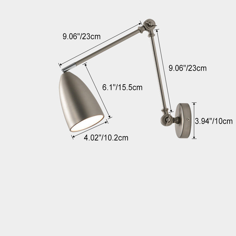 Modern Simplicity Metal Semi-Cone Shade With Retractable Rocker Arm Long Rod 1-Light Wall Sconce Lamp For Living Room