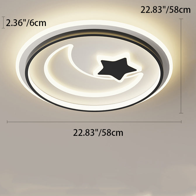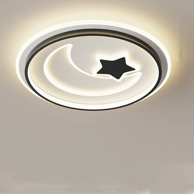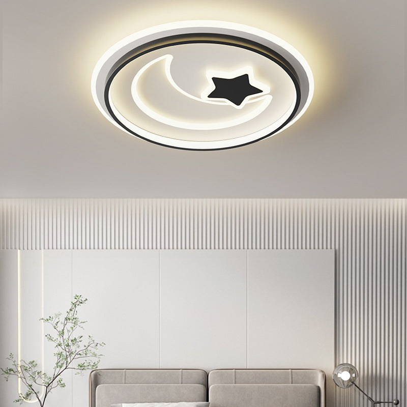 Modern Simplicity Moon Round Iron Acrylic LED Flush Mount Ceiling Light For Bedroom
