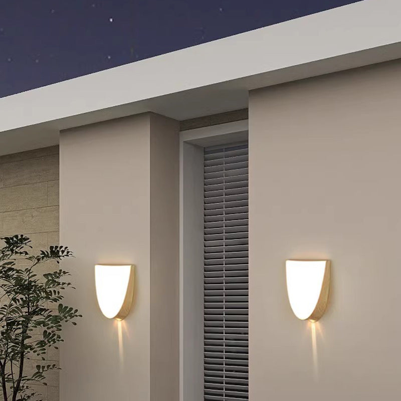 Modern Simplicity Oval Wood Grain ABS LED Waterproof Outdoor Wall Sconce Lamp For Garden