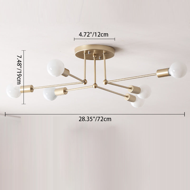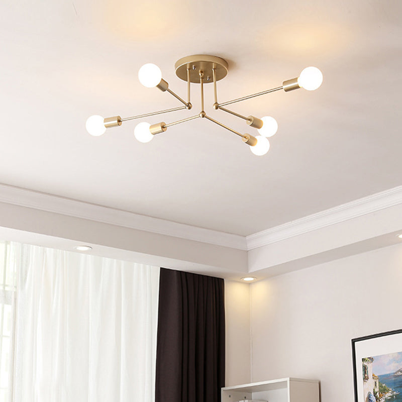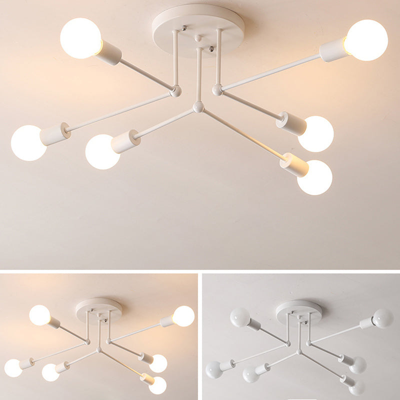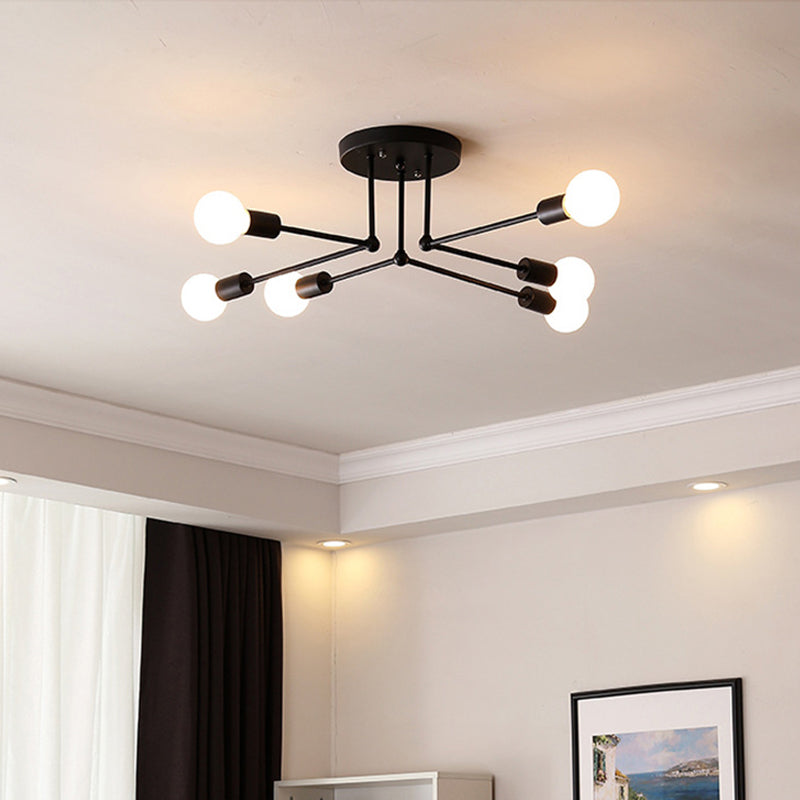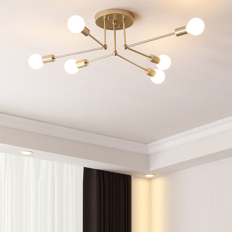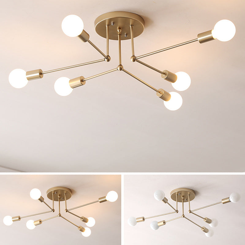 Modern Simplicity Round Right Angle Magic Bean Glass Iron 6-Light Semi-Flush Mount Ceiling Light For Living Room