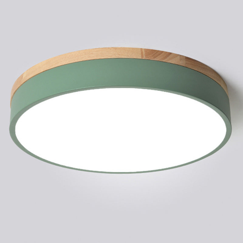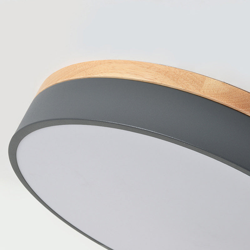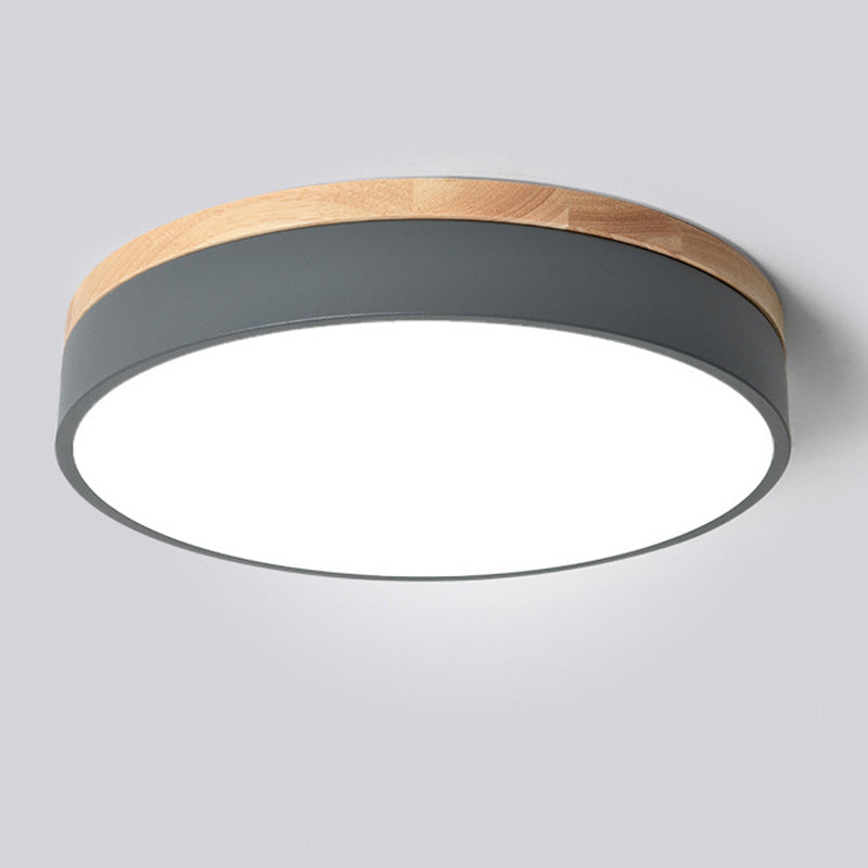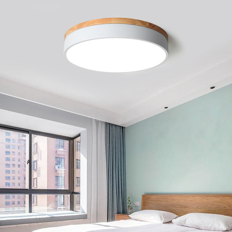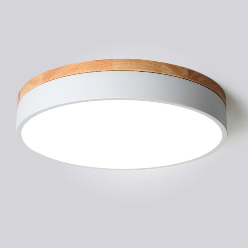 Modern Simplicity Round Wood Iron Acrylic LED Flush Mount Ceiling Light For Bedroom
