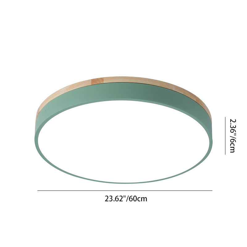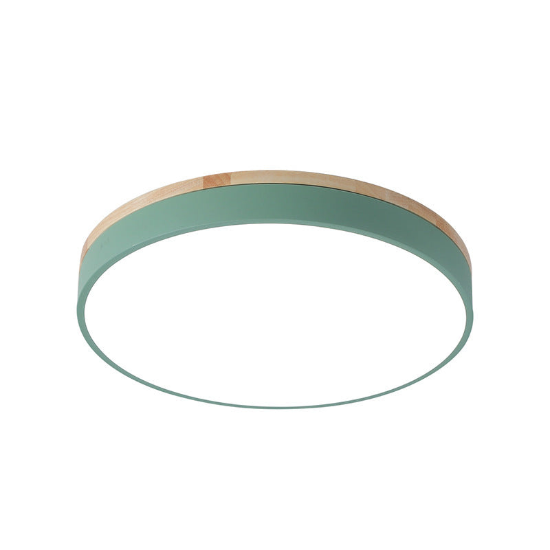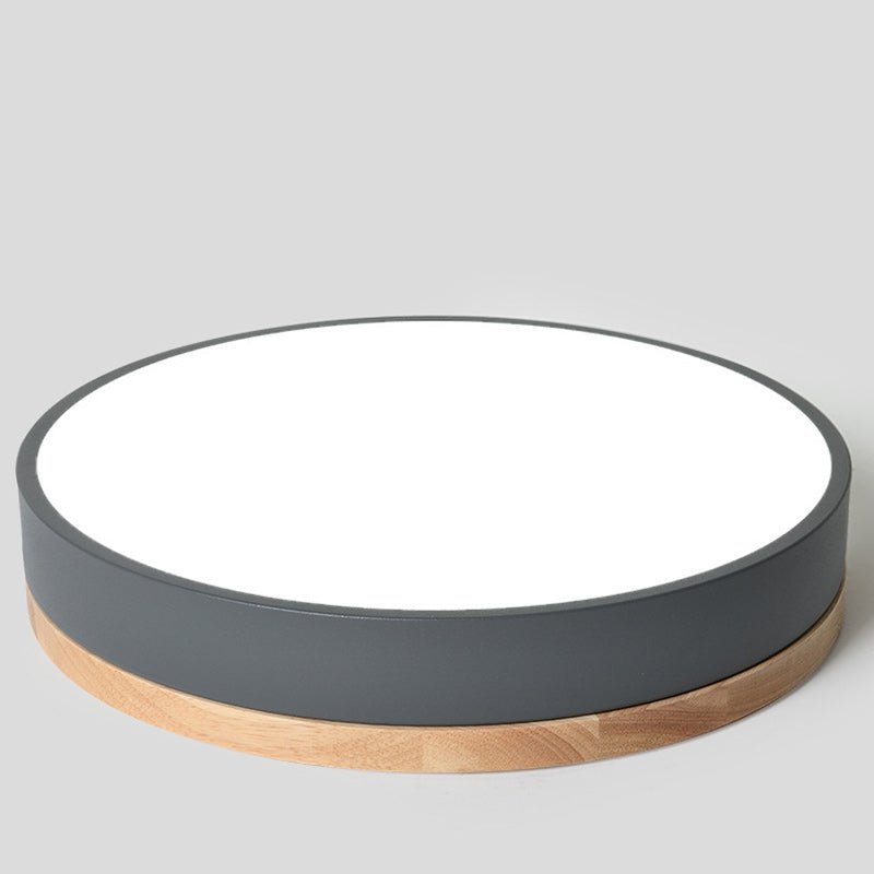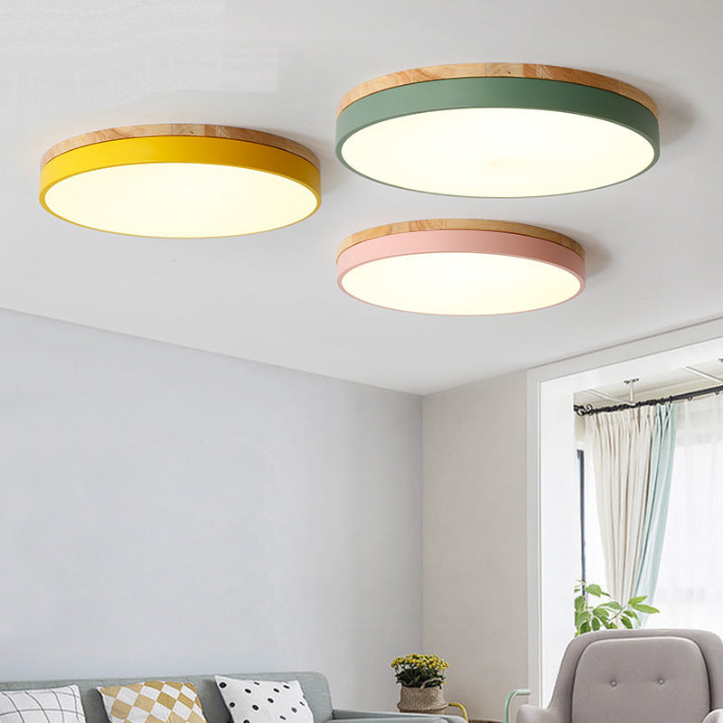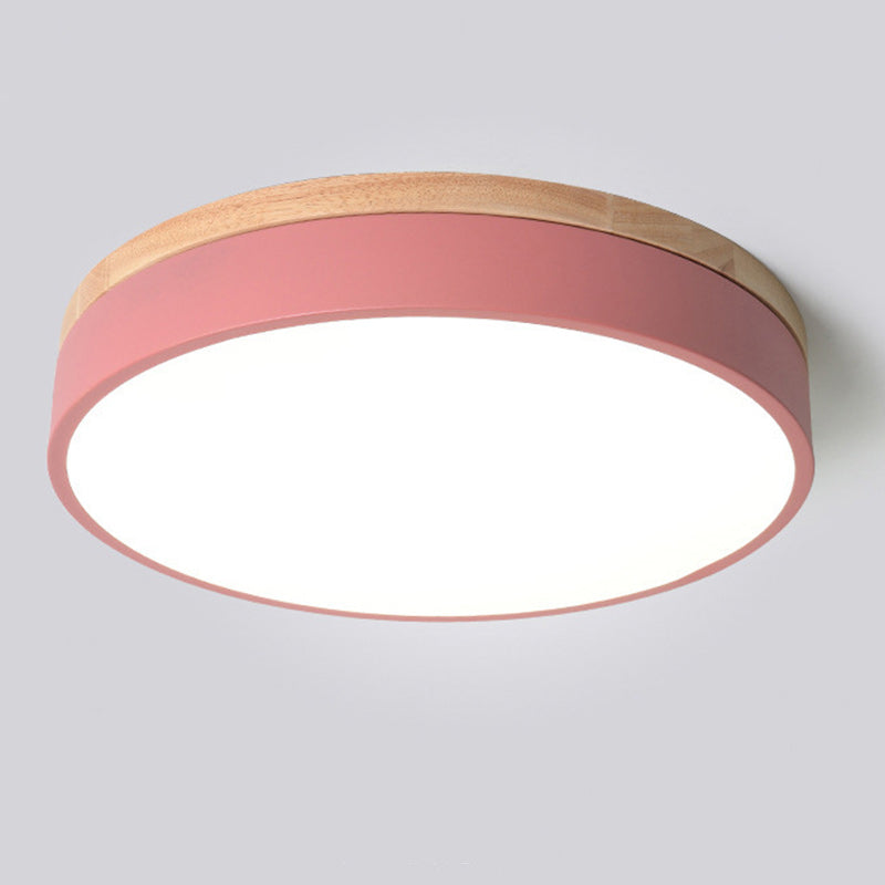Modern Simplicity Round Wood Iron Acrylic LED Flush Mount Ceiling Light For Bedroom