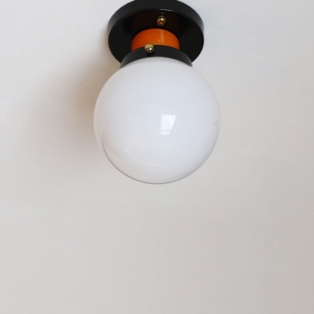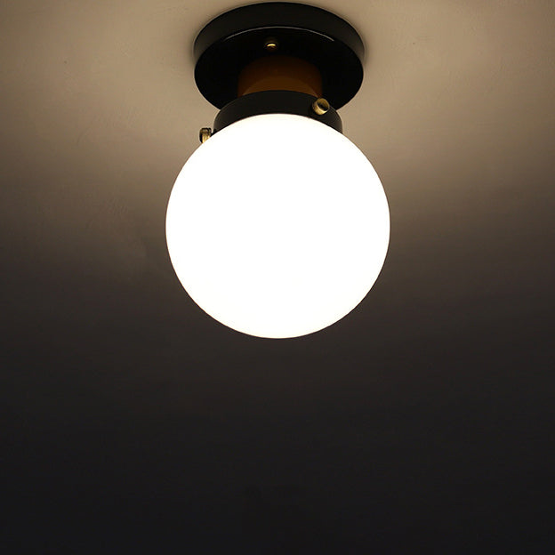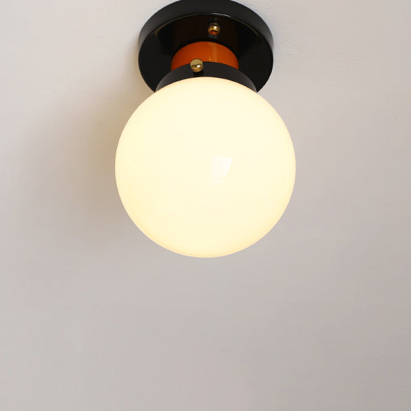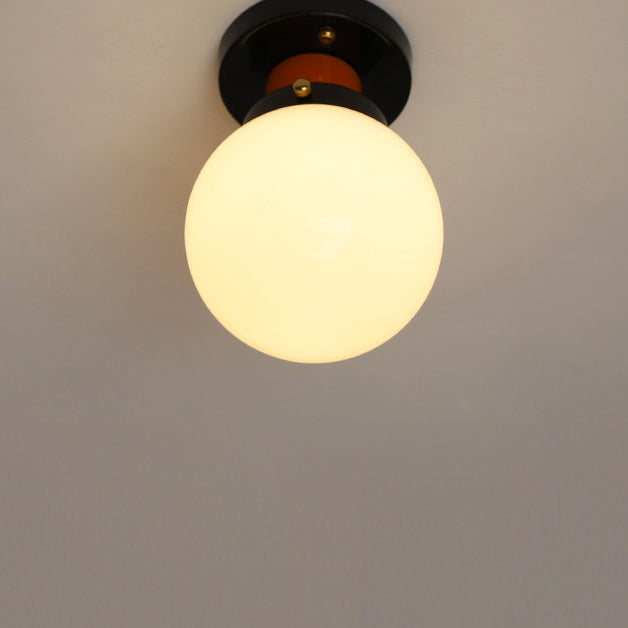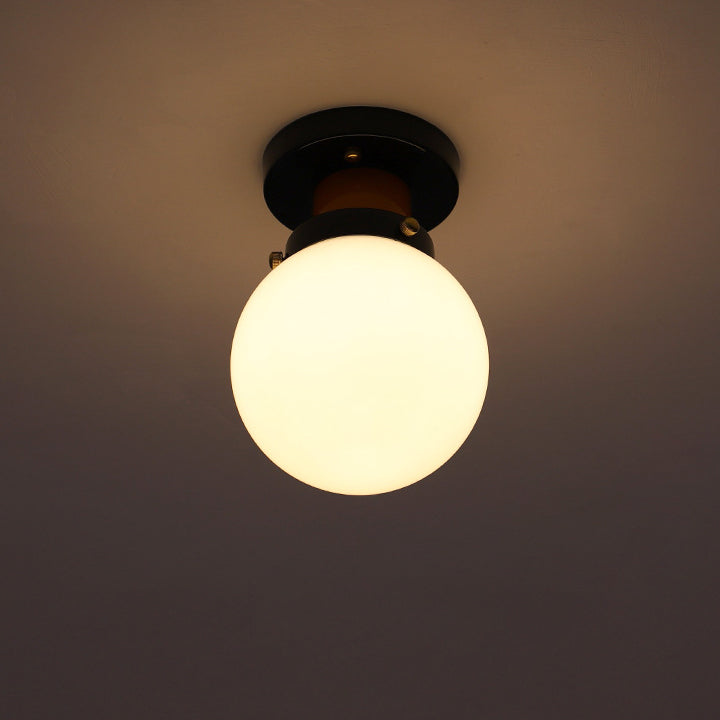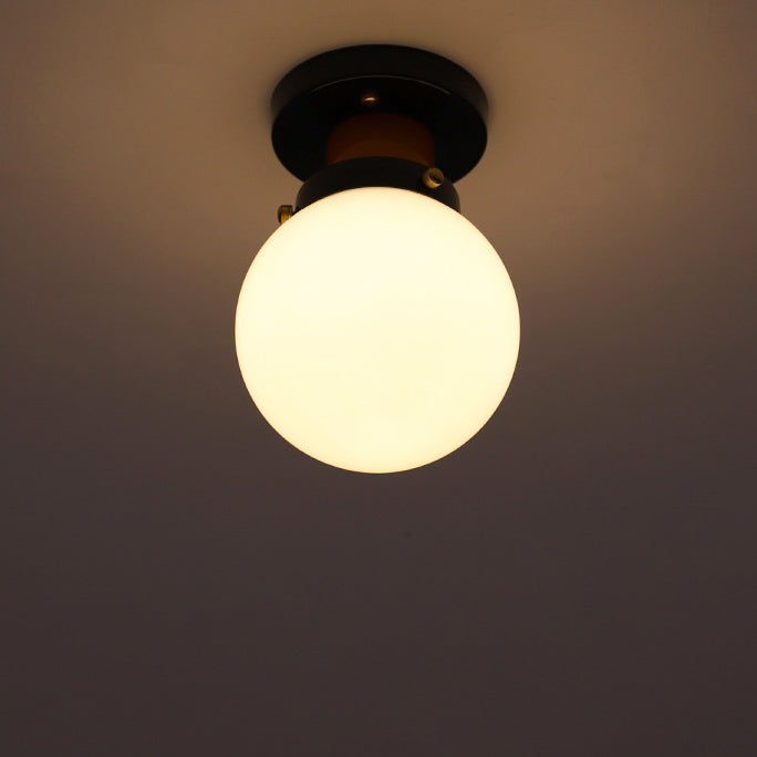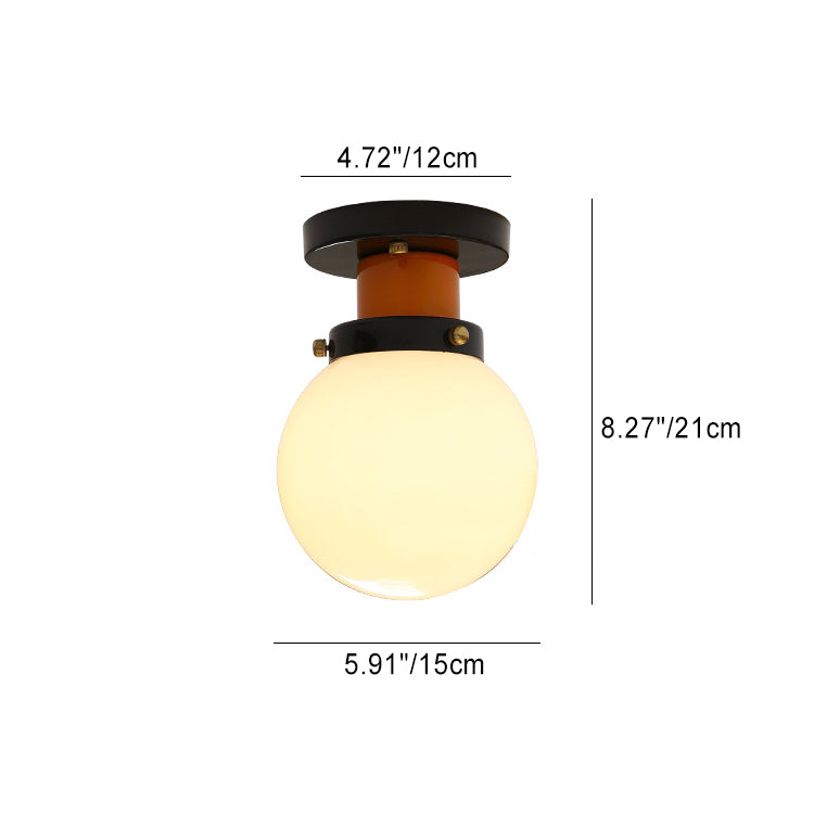 Modern Simplicity Sphere Iron Glass 1-Light Semi-Flush Mount Ceiling Light For Bedroom