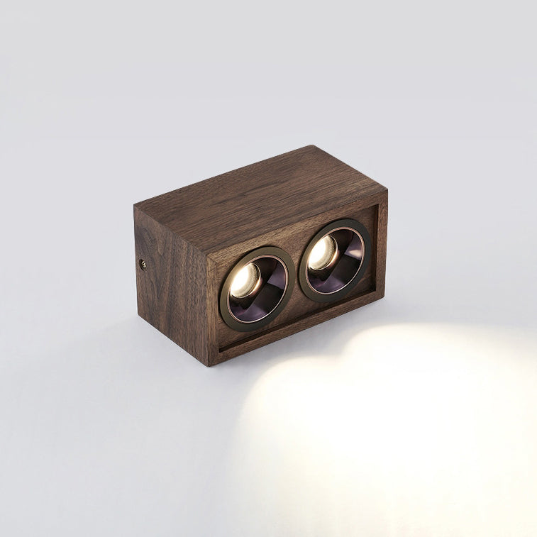 Modern Simplicity Square Cube Aluminum Walnut LED Flush Mount Ceiling Light For Living Room