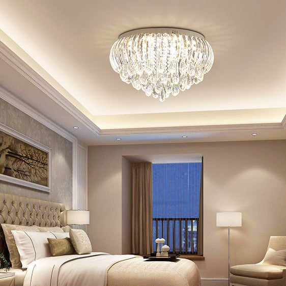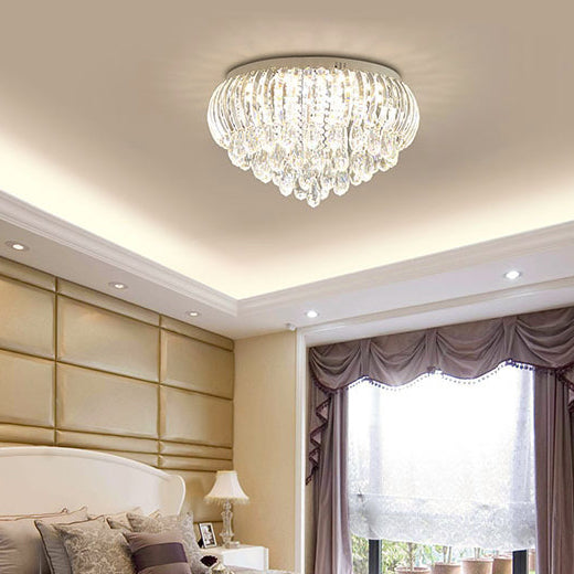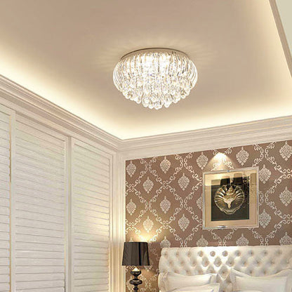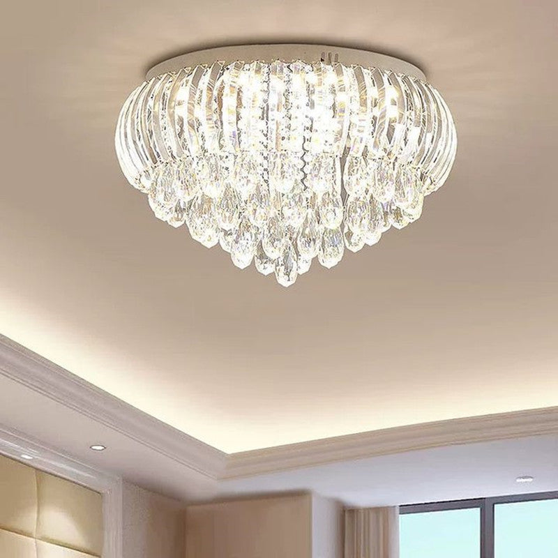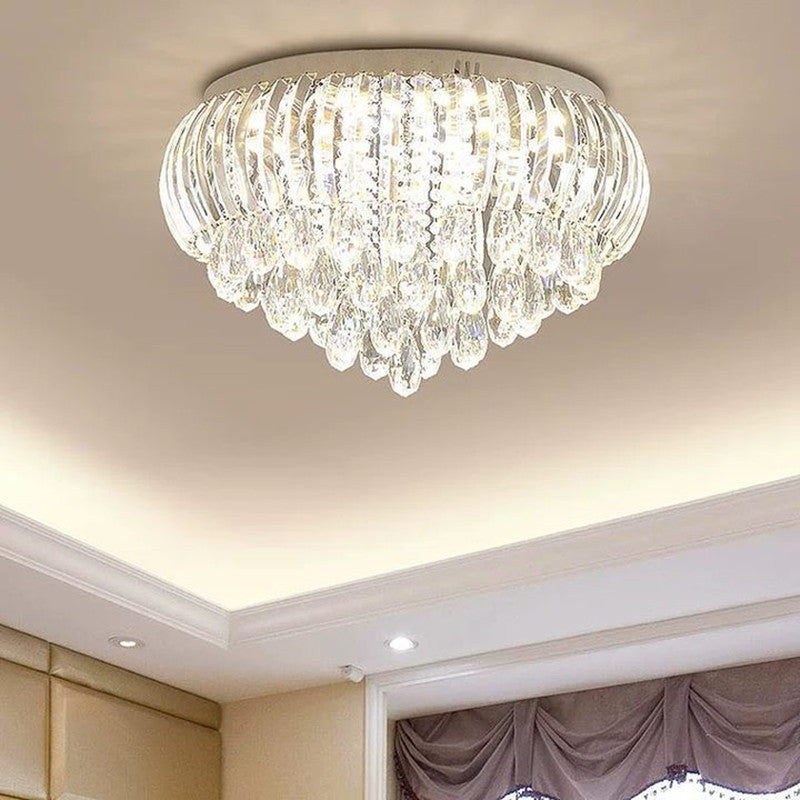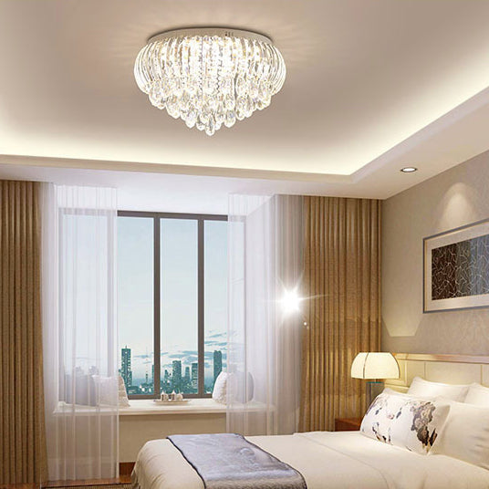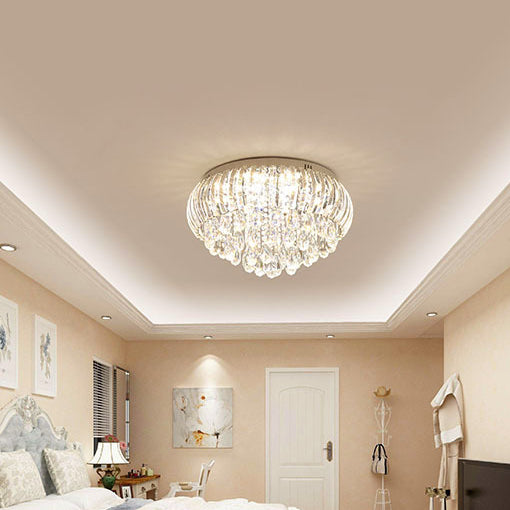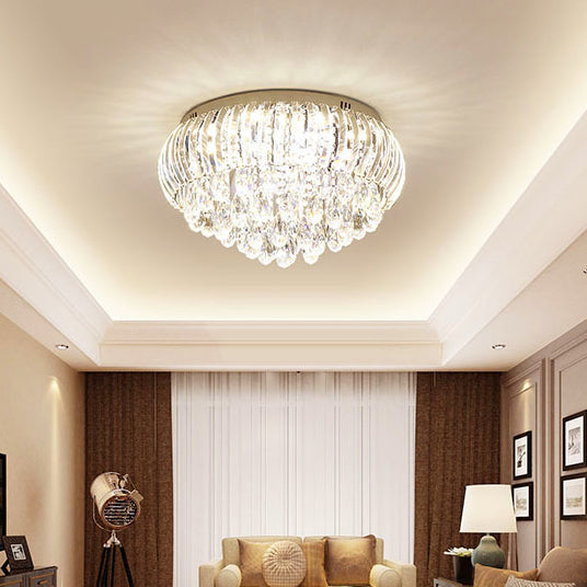 Modern Simplicity Stainless Steel Crystal Round Drop 7/9/10 Light Flush Mount Ceiling Light For Living Room