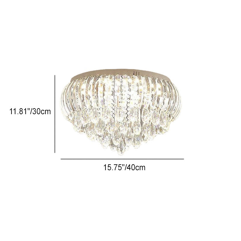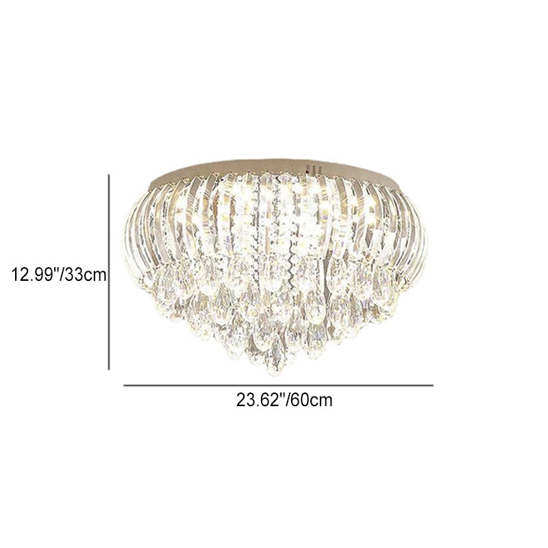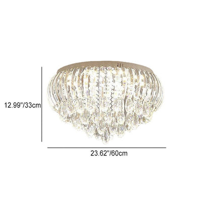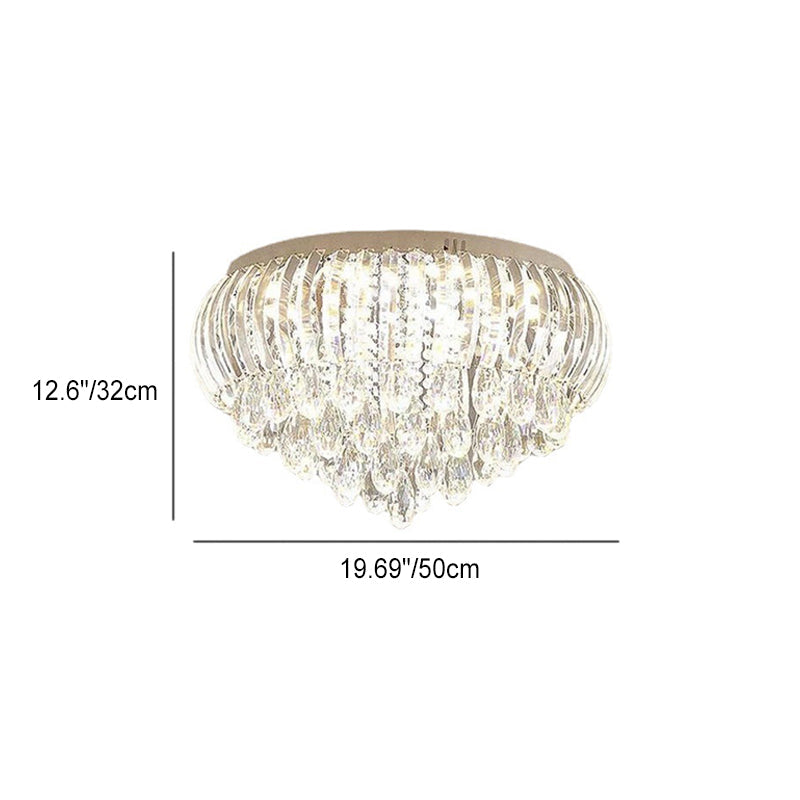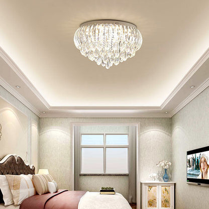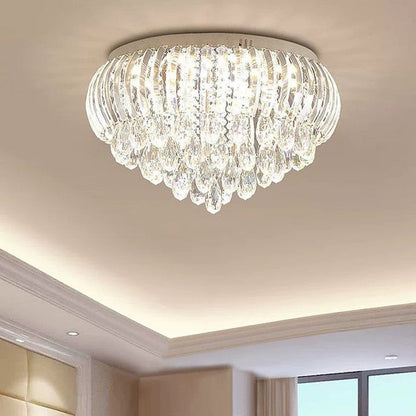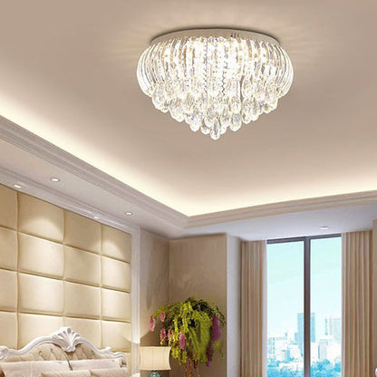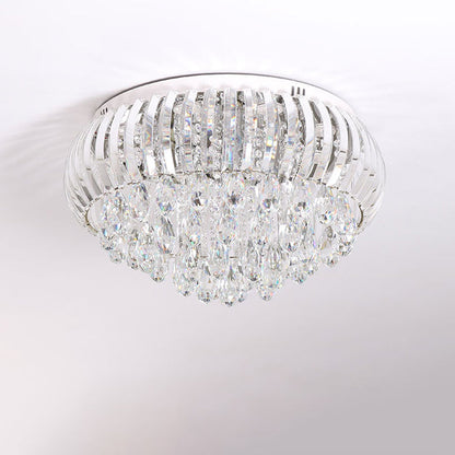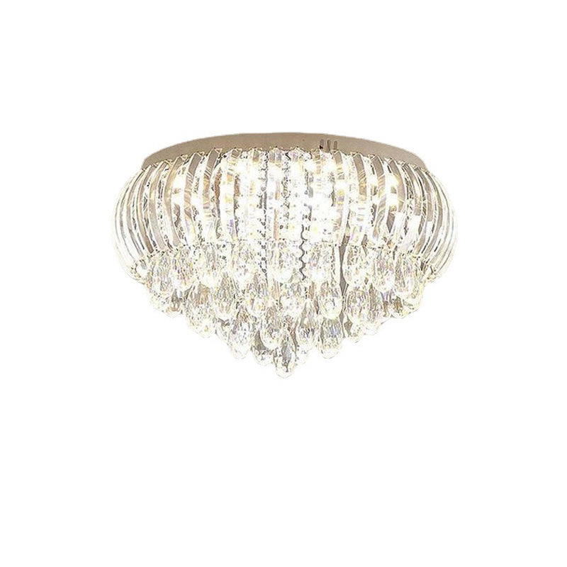 Modern Simplicity Stainless Steel Crystal Round Drop 7/9/10 Light Flush Mount Ceiling Light For Living Room