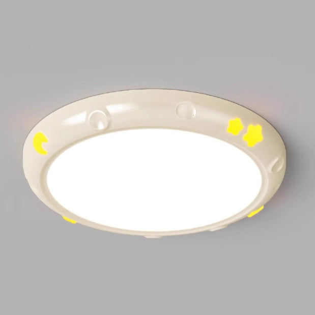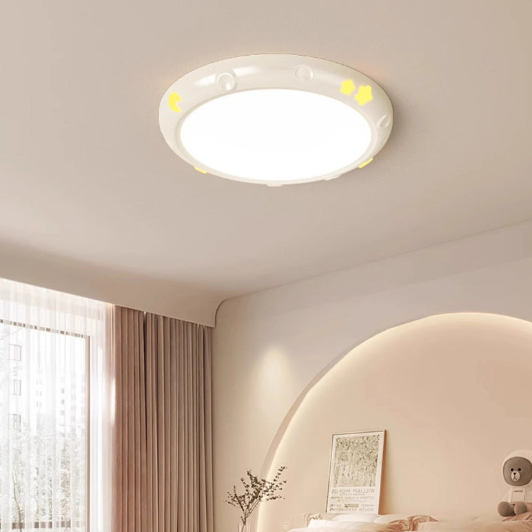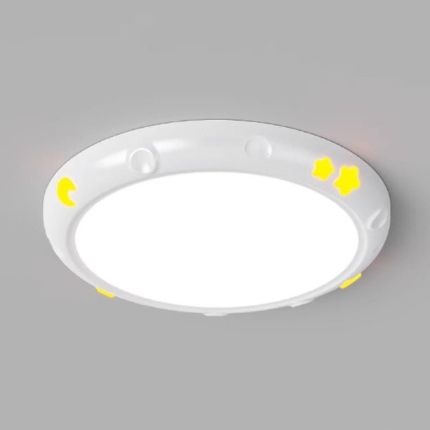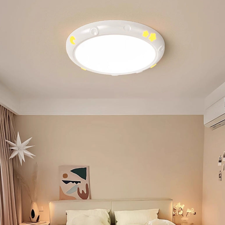 Modern Simplicity Stars Moon Round Iron ABS Resin LED Flush Mount Ceiling Light For Bedroom
