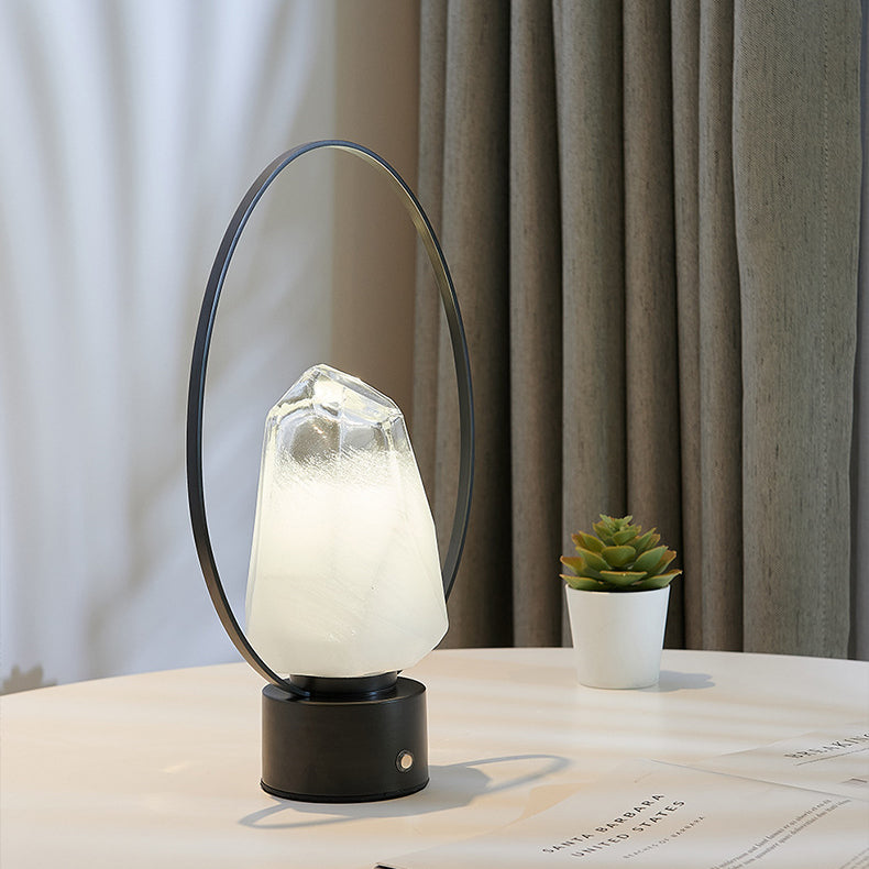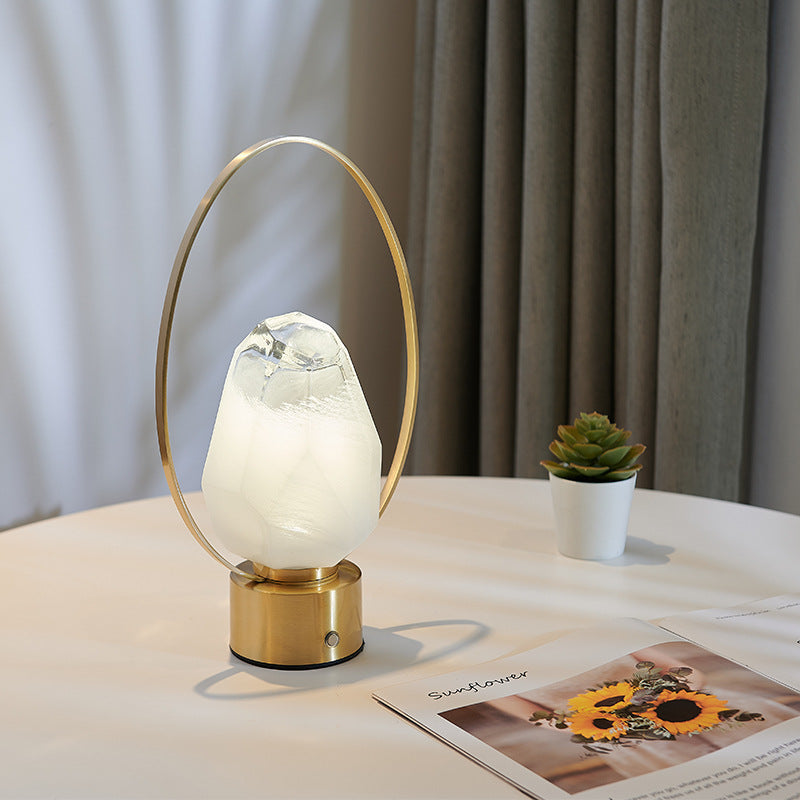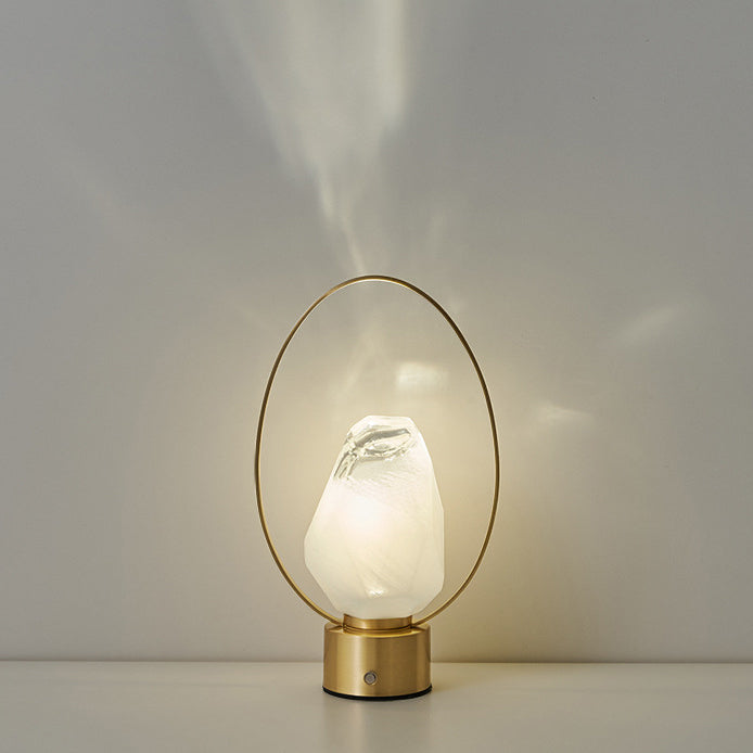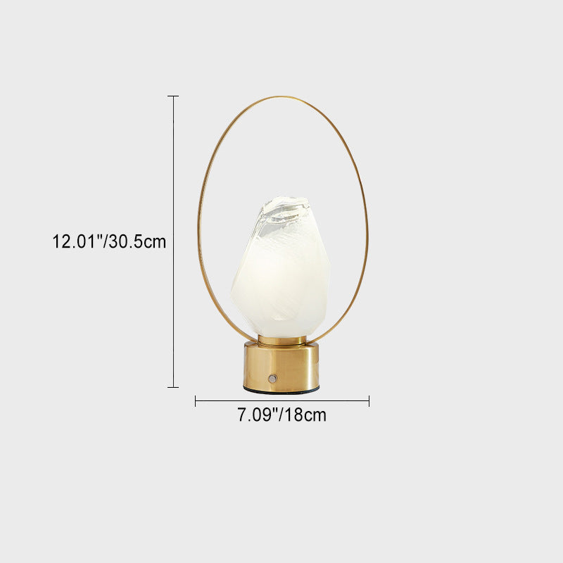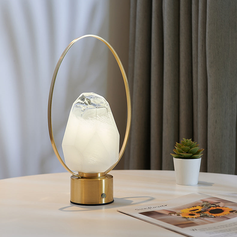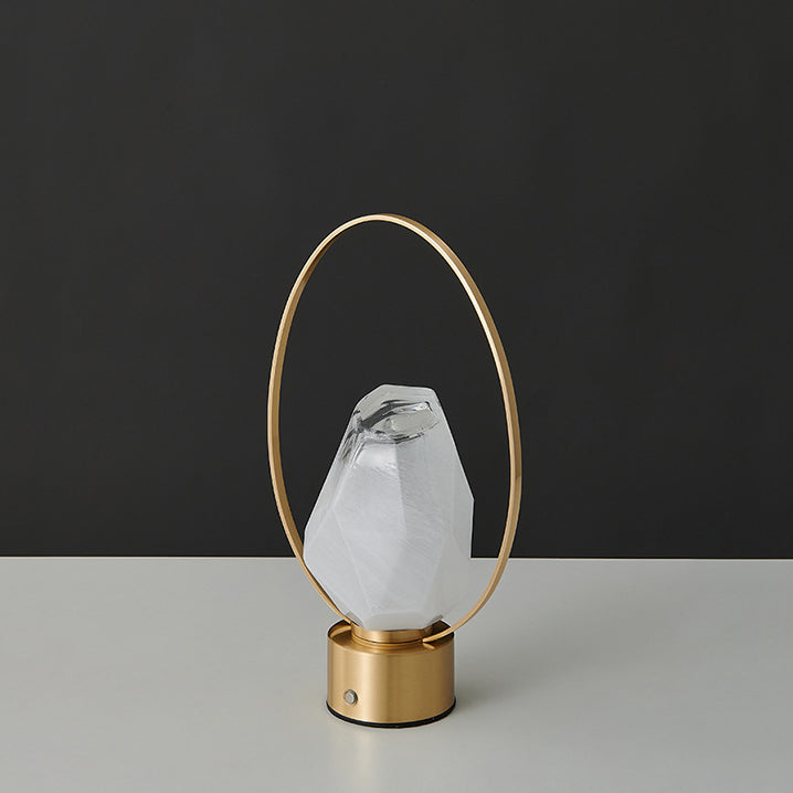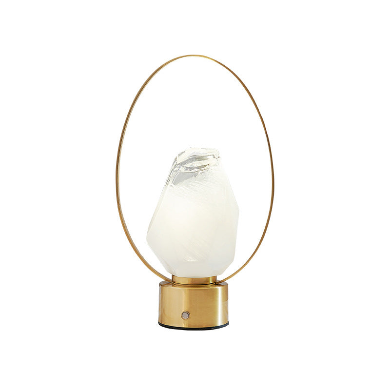 Modern Simplicity USB Brass Oval Ring Glass Stone Shade LED Table Lamp For Study