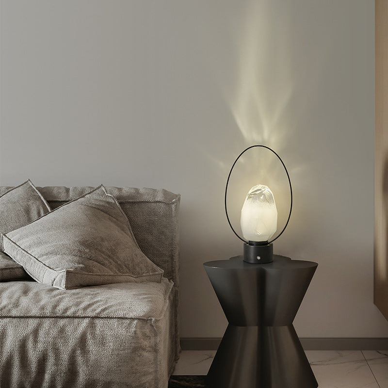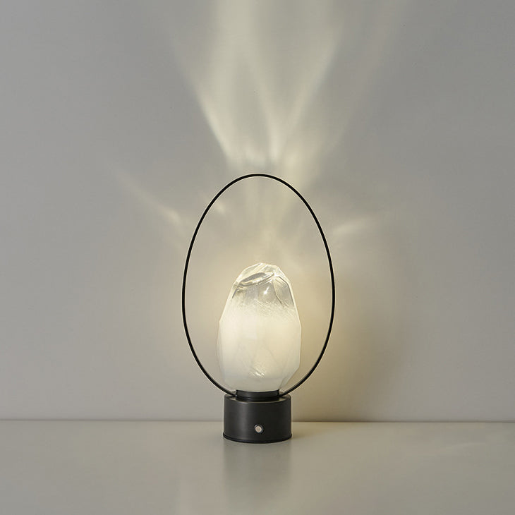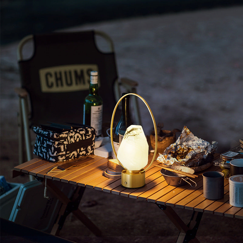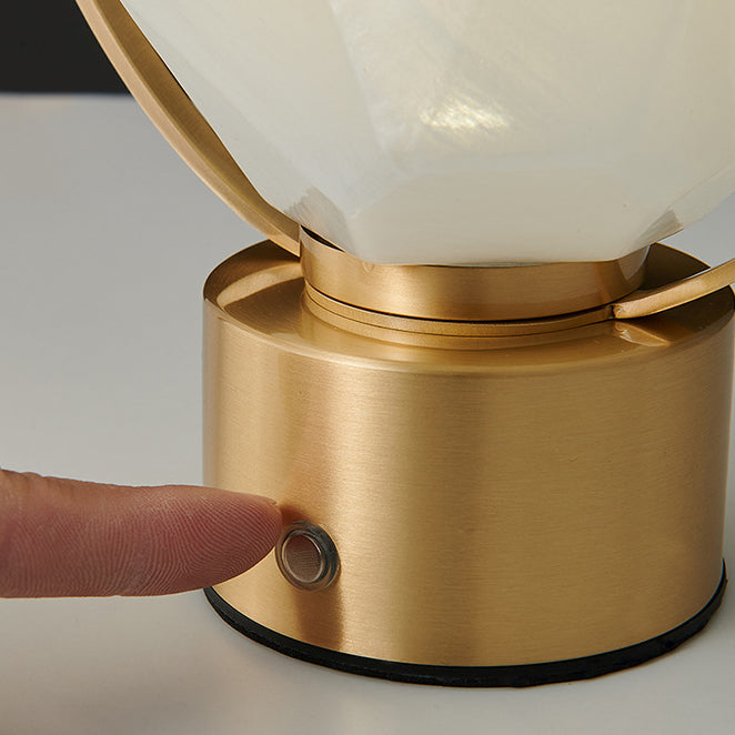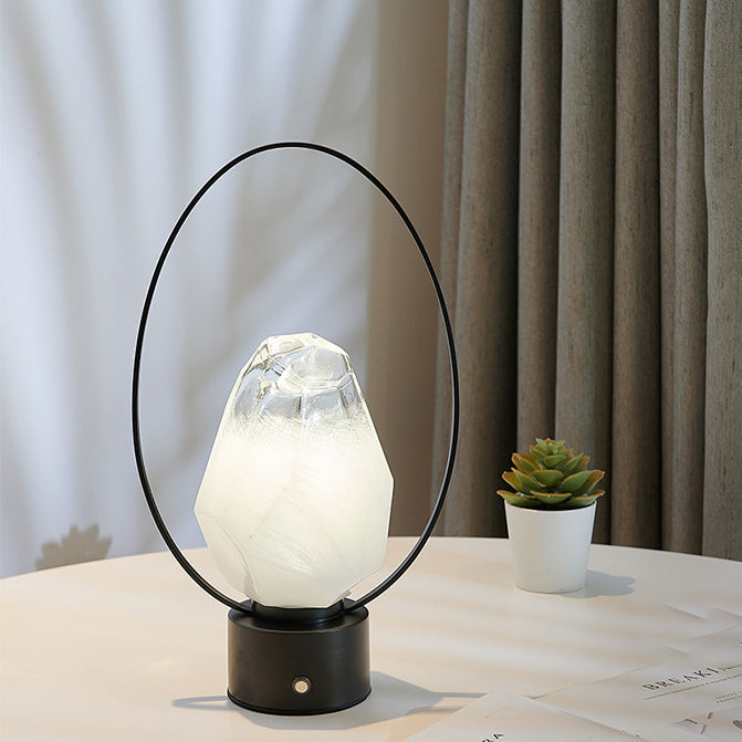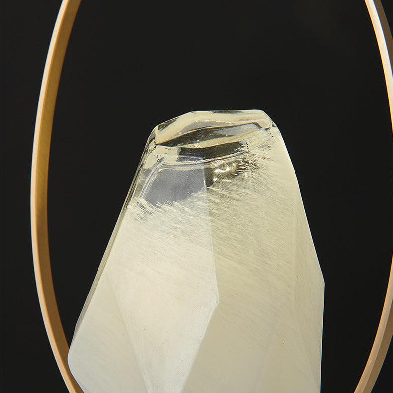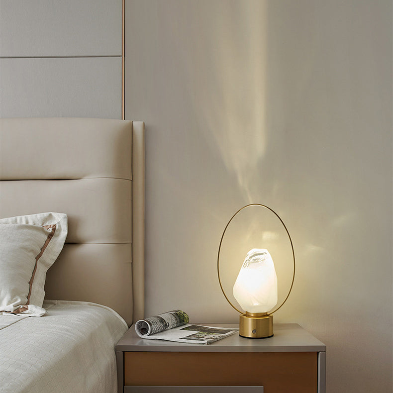 Modern Simplicity USB Brass Oval Ring Glass Stone Shade LED Table Lamp For Study