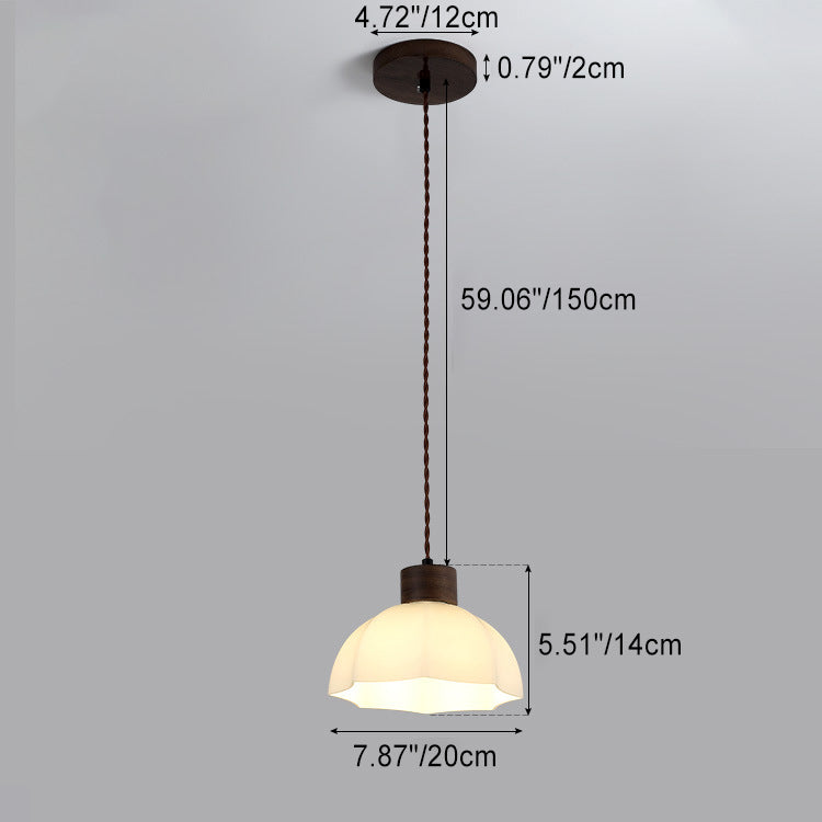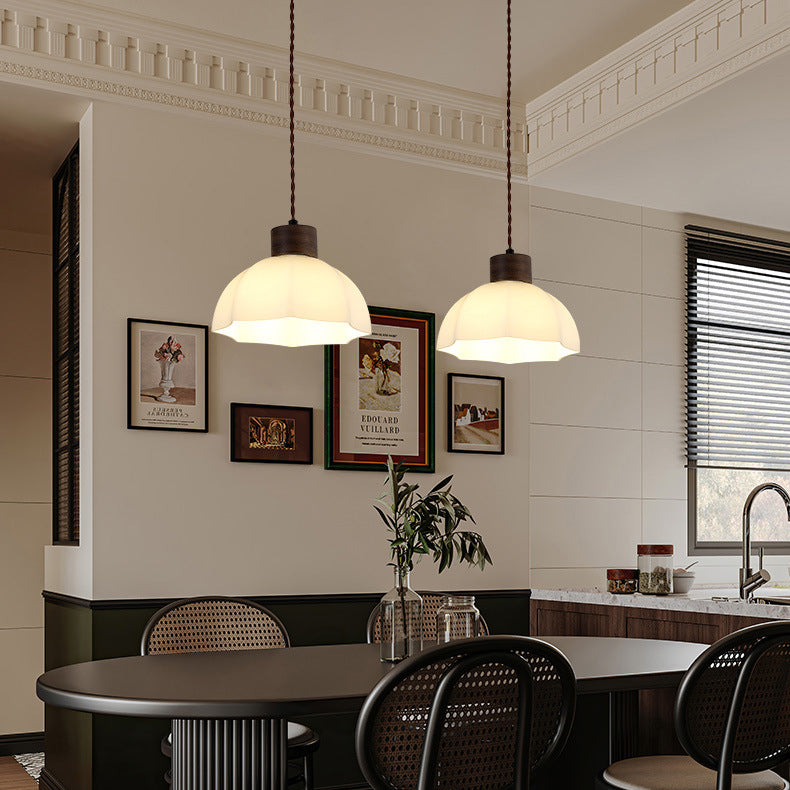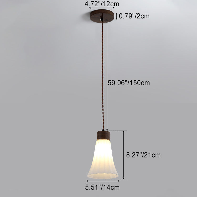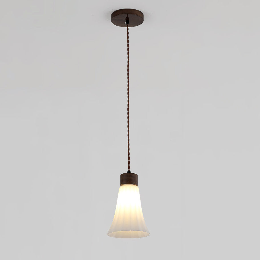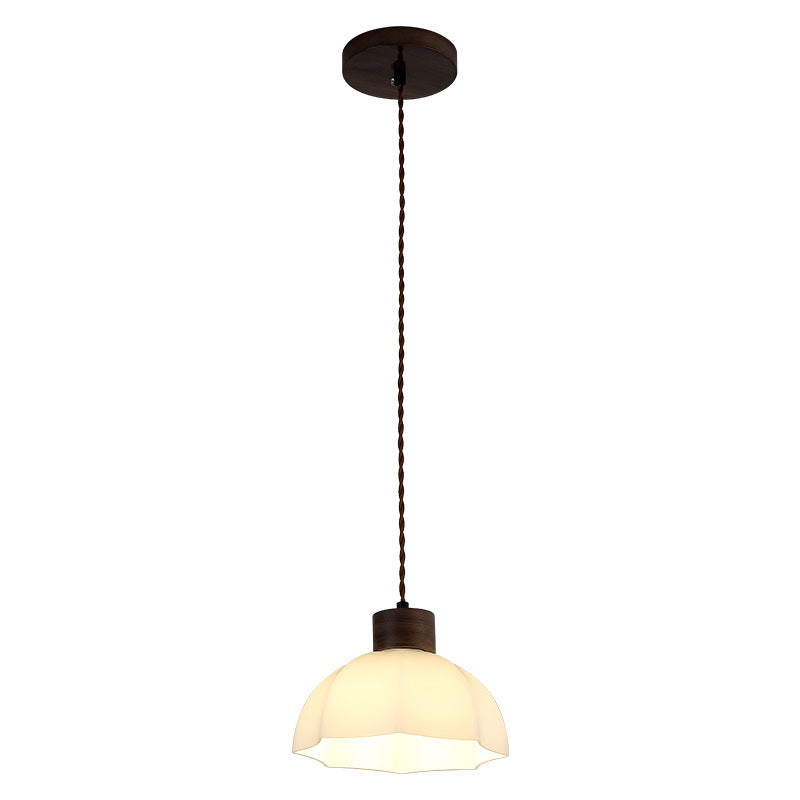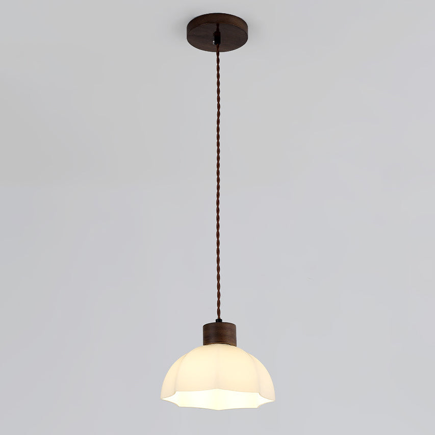 Modern Simplicity Walnut Glass Round Bell Dome 1-Light Pendant Light For Dining Room
