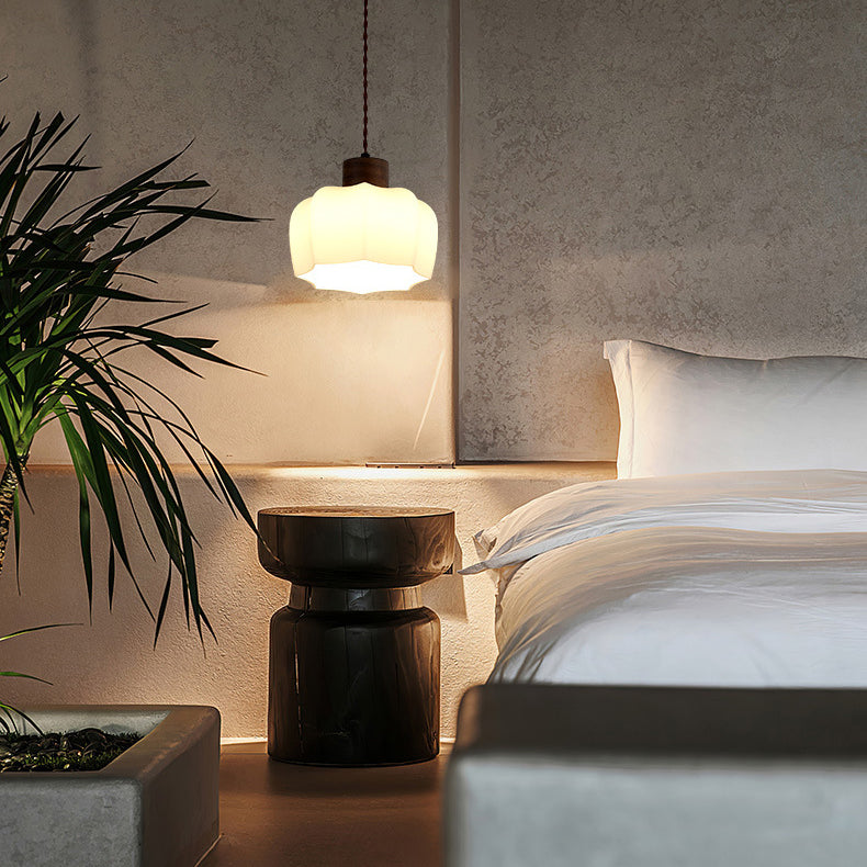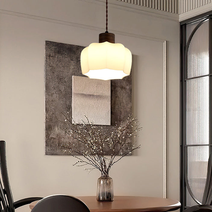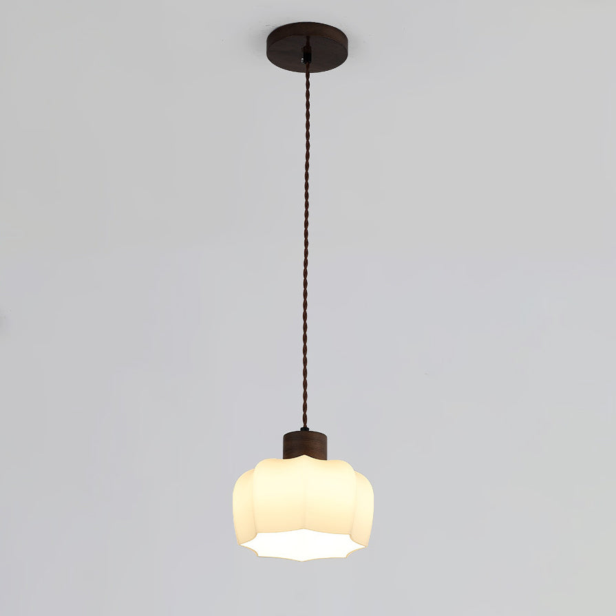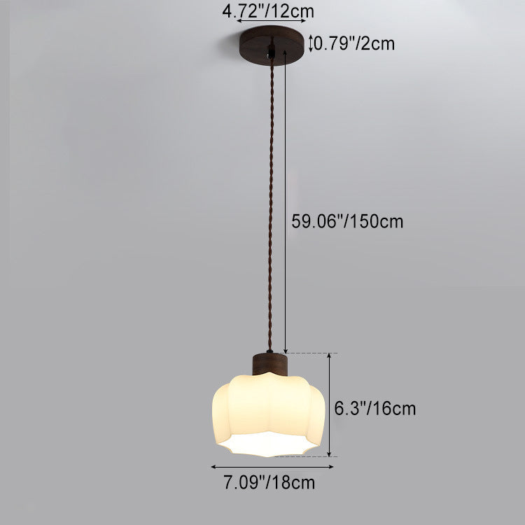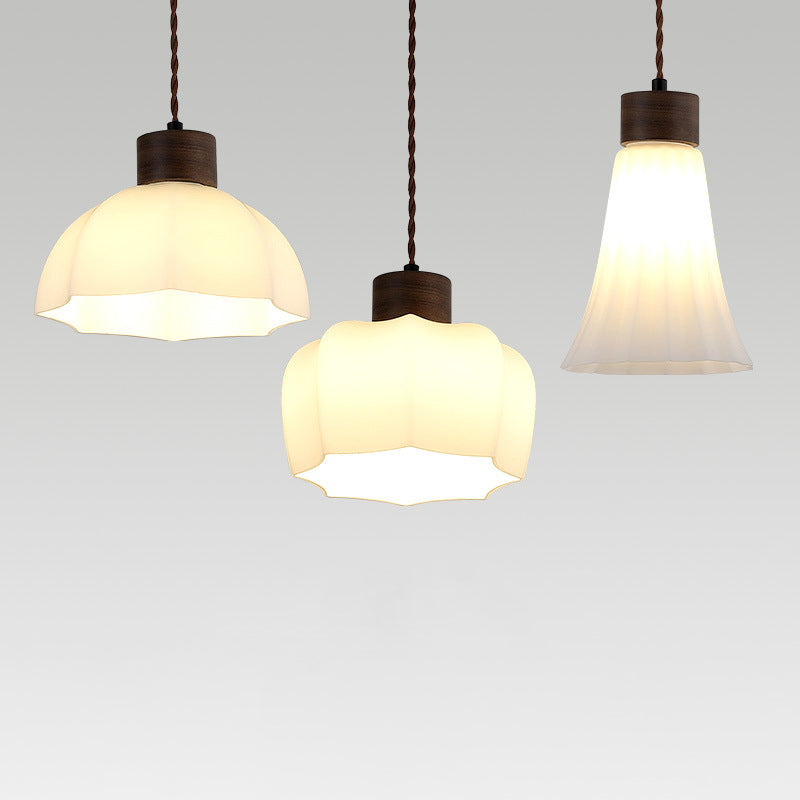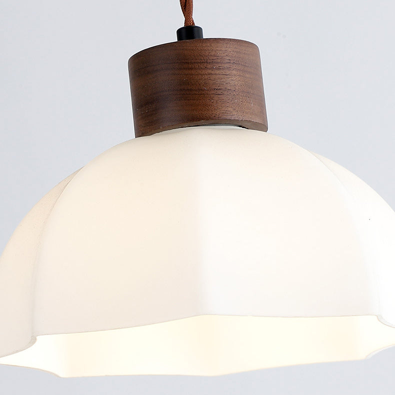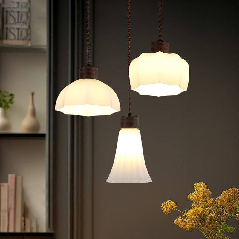 Modern Simplicity Walnut Glass Round Bell Dome 1-Light Pendant Light For Dining Room