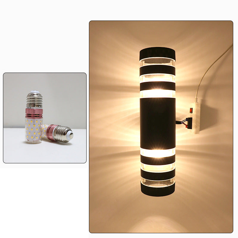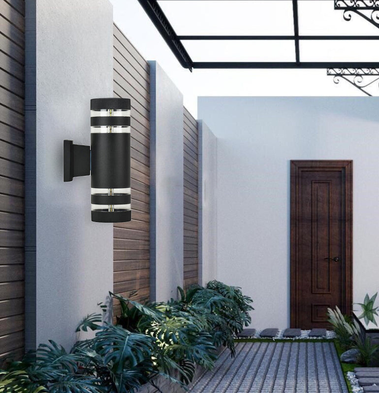 Modern Simplicity Waterproof Aluminum Iron Acrylic Glass Cylinder 2-Light Wall Sconce Lamp For Outdoor Patio