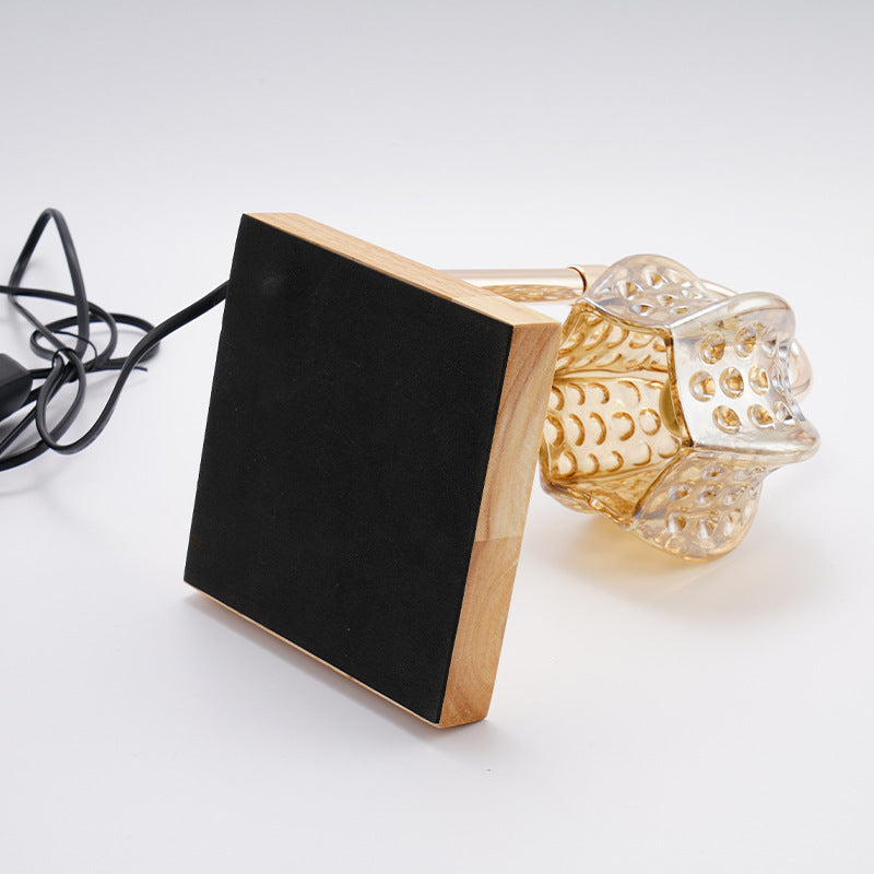 Modern Simplicity Wood Iron Glass Round Ball Square Base 1-Light Dimmable Melting Wax Table Lamp For Bedside