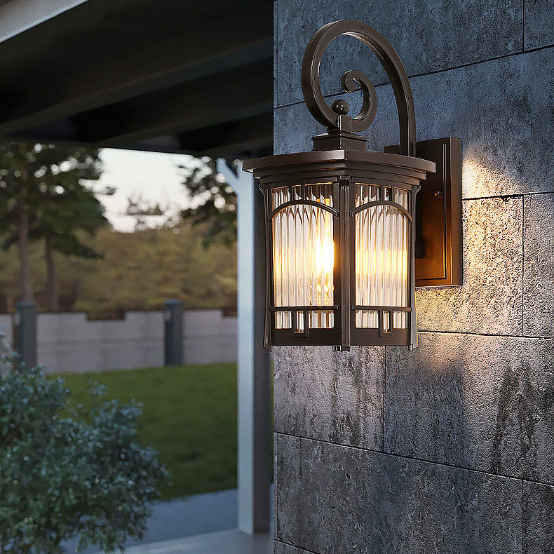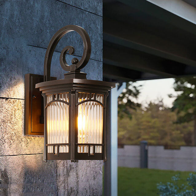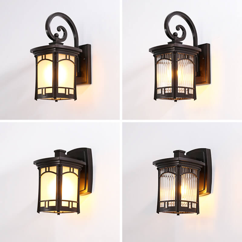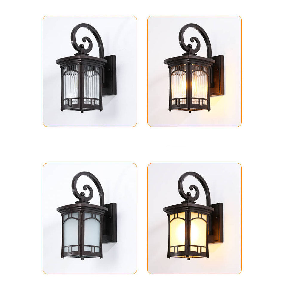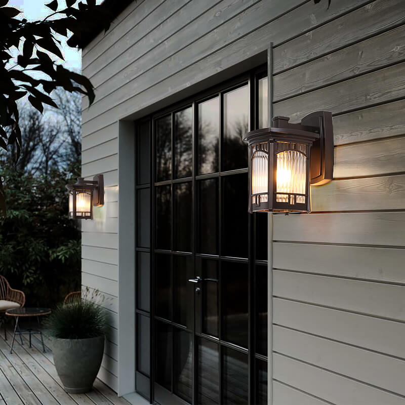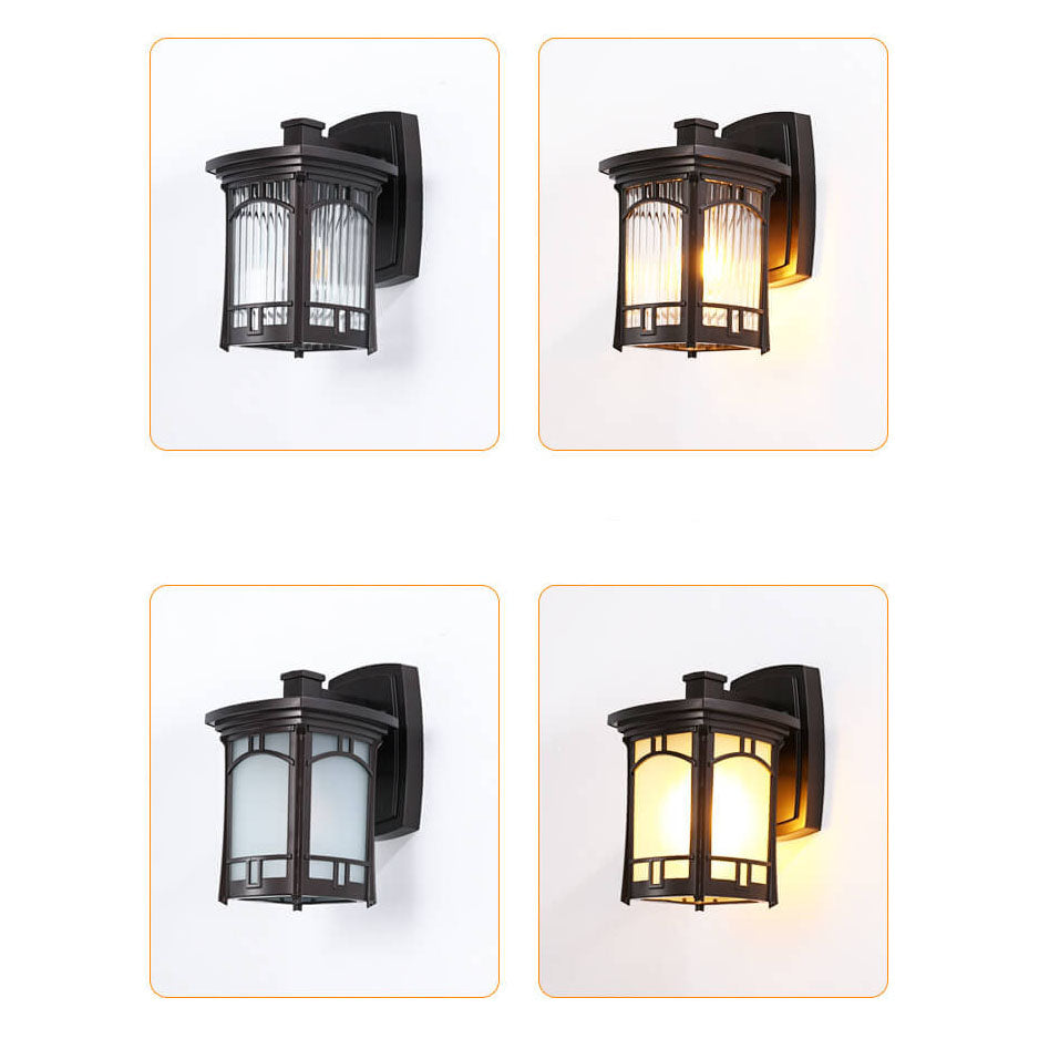 Modern Square Aluminum Glass Carved 1-Light Outdoor Waterproof Wall Sconce Lamp