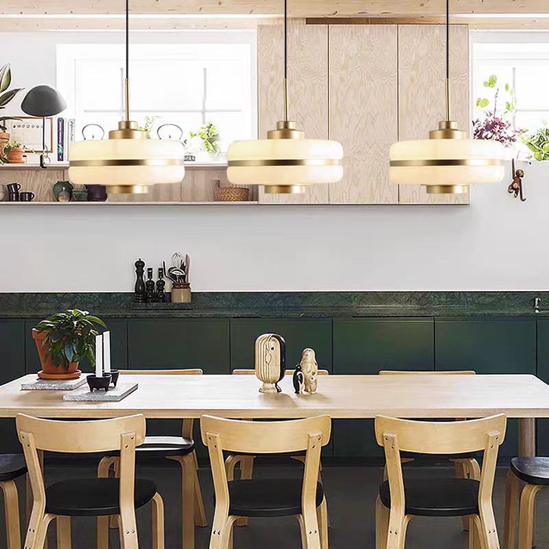 Modern Transitional Cylinder Iron Glass 1-Light Pendant Light For Living Room
