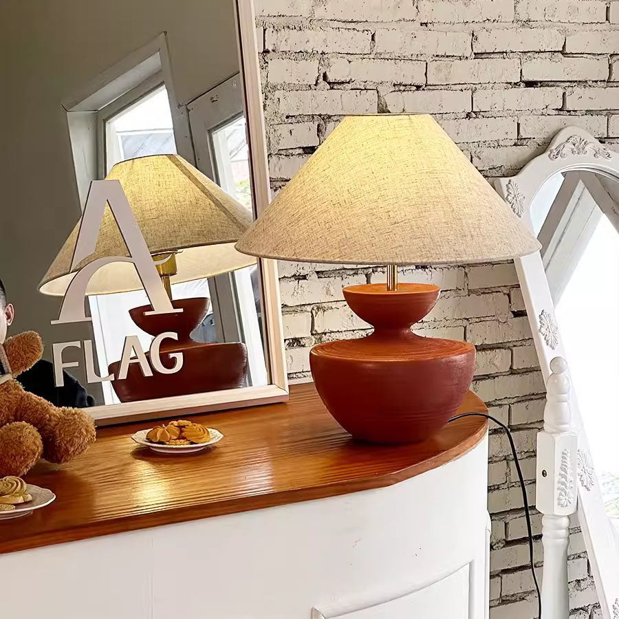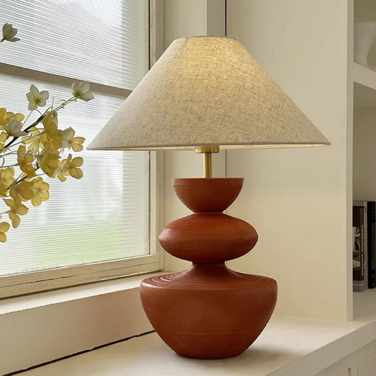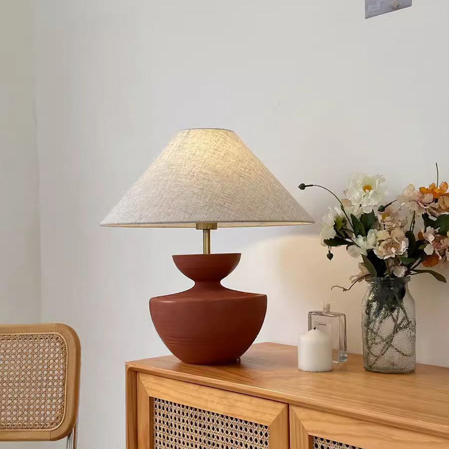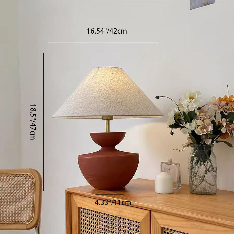 Modern Transitional Fabric Shade Resin Round Base 1-Light Table Lamp For Home Office