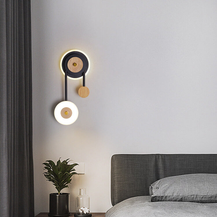 Nordic Creative Round Wood Acrylic Ring LED Wall Sconce Lamp