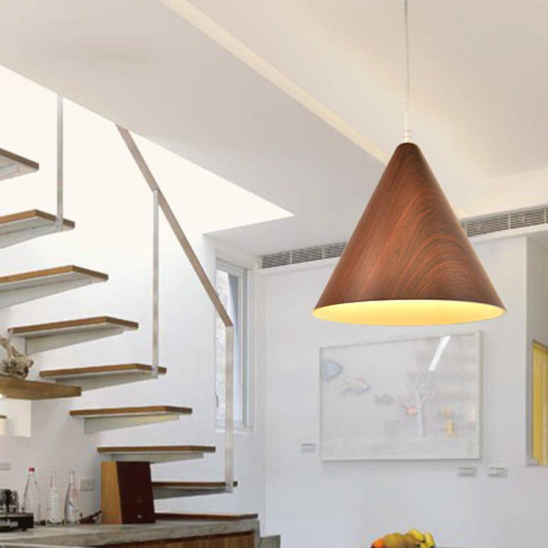 Nordic Creative Wood Grain Cone Aluminum 1-Light Pendant Light
