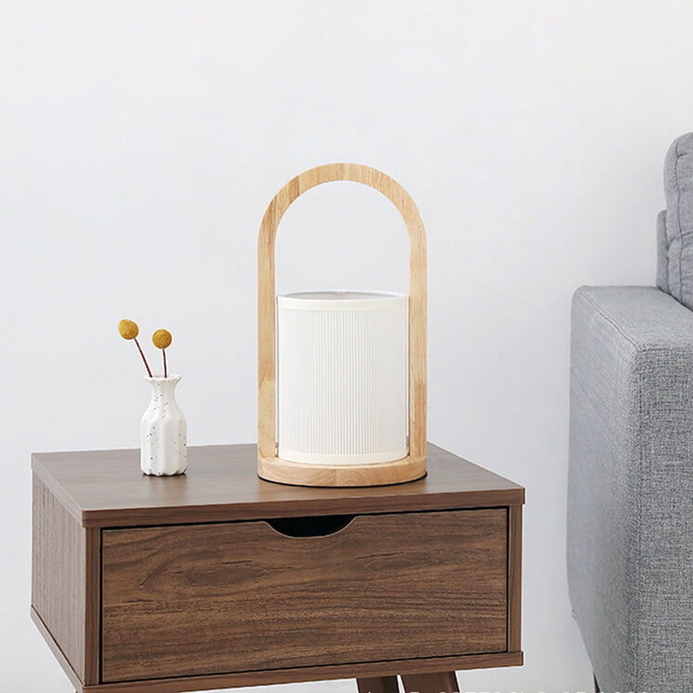Nordic Fabric Column Solid Wood Portable Design 1-Light Table Lamp