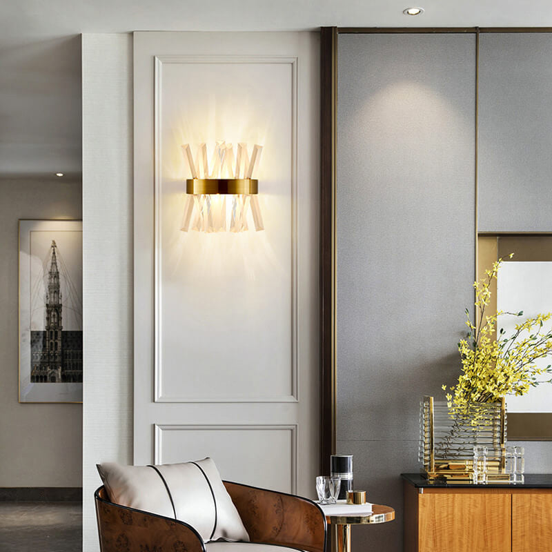 Nordic Light Luxury Creative Crystal Strip Design 2-Light Wall Sconce Lamp