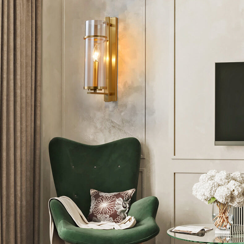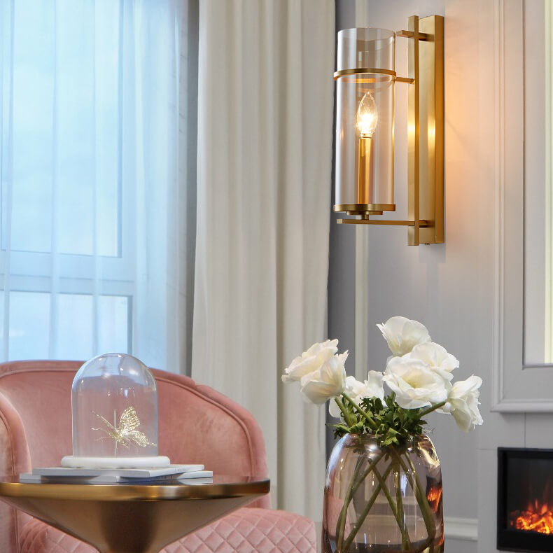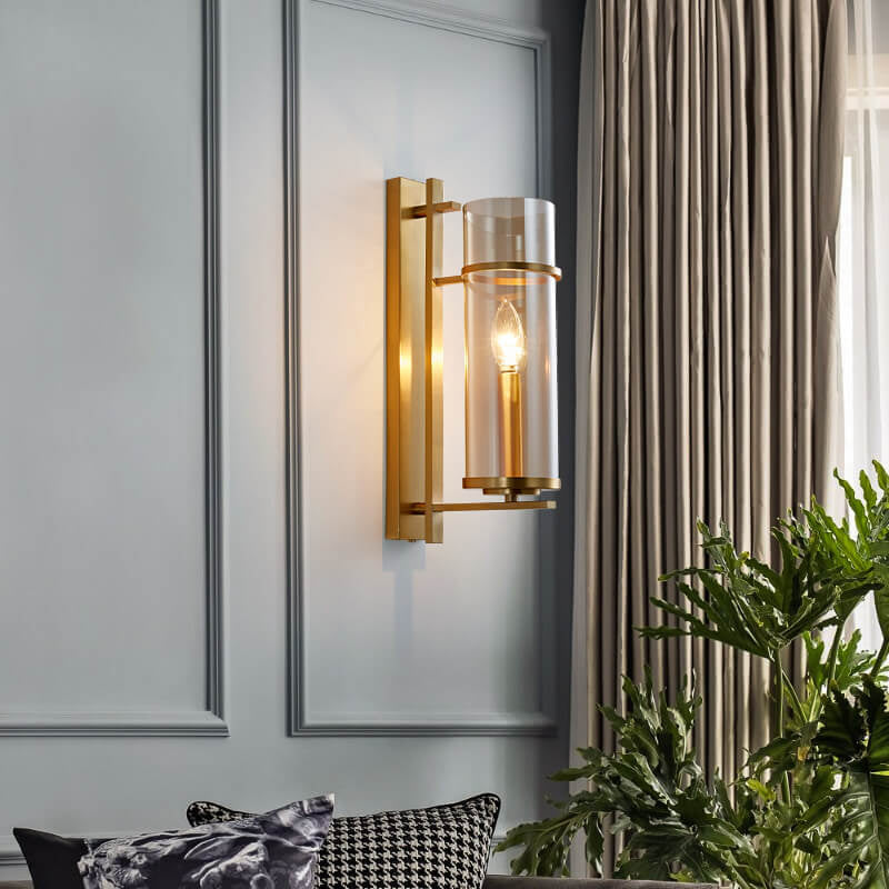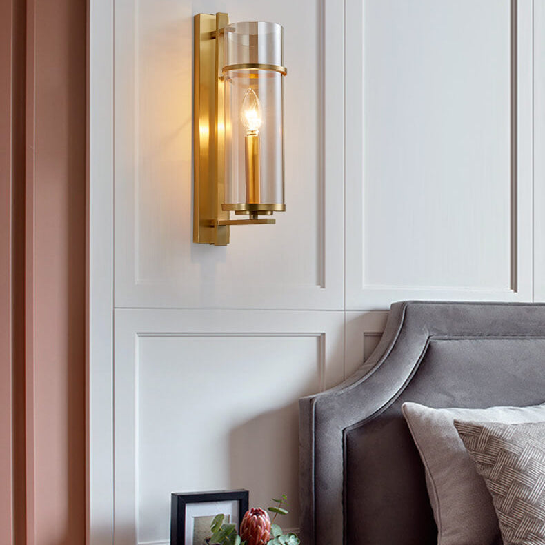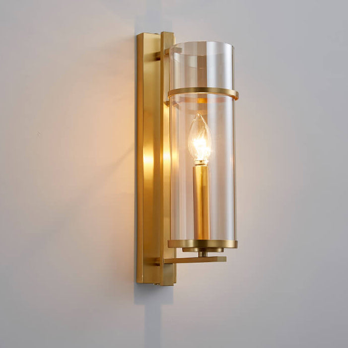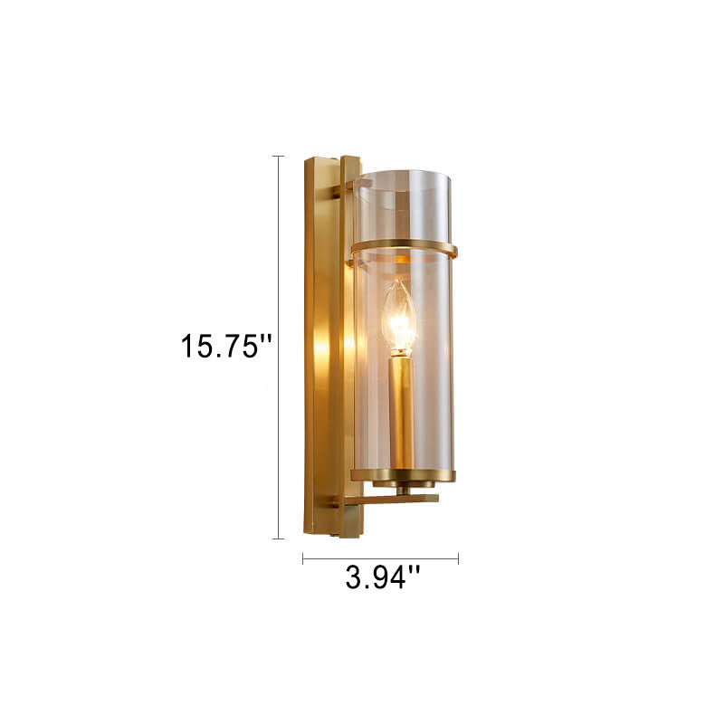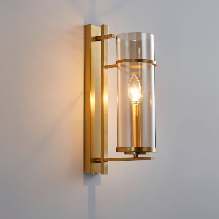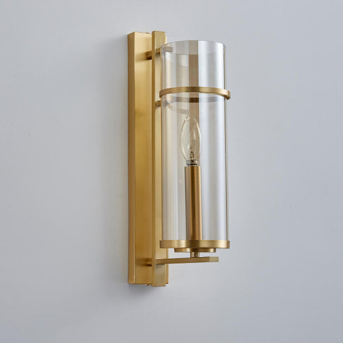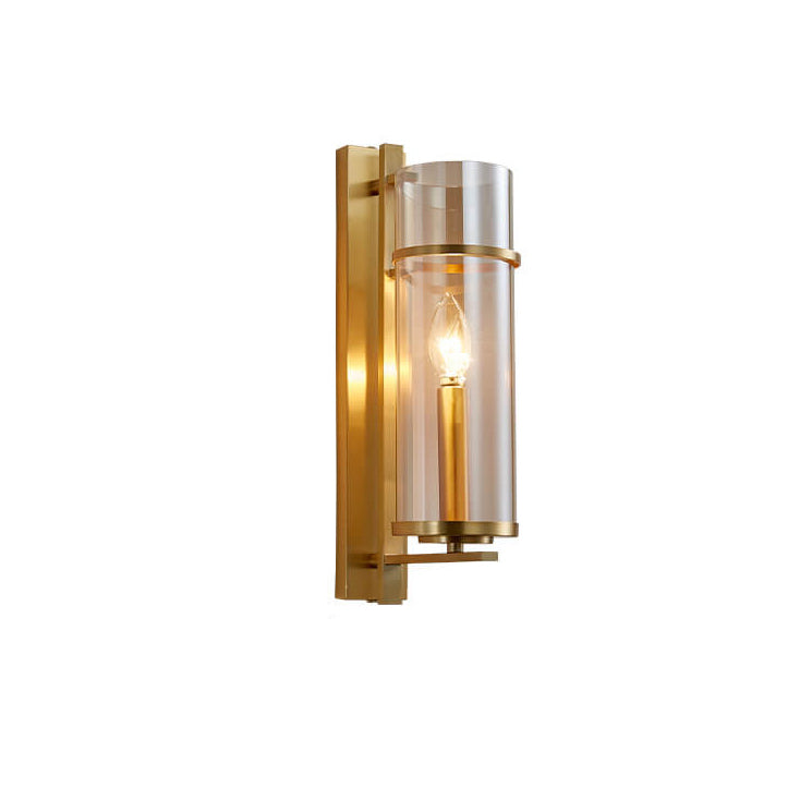 Nordic Luxury Brass Columnar Glass 1-Light Wall Sconce Lamp