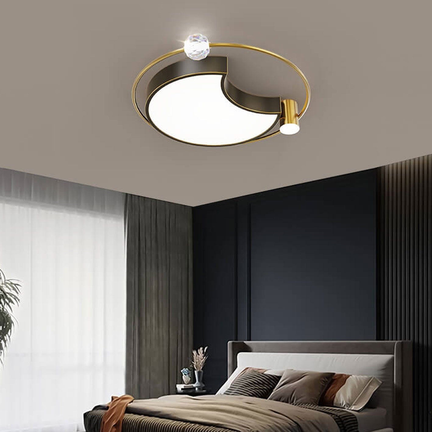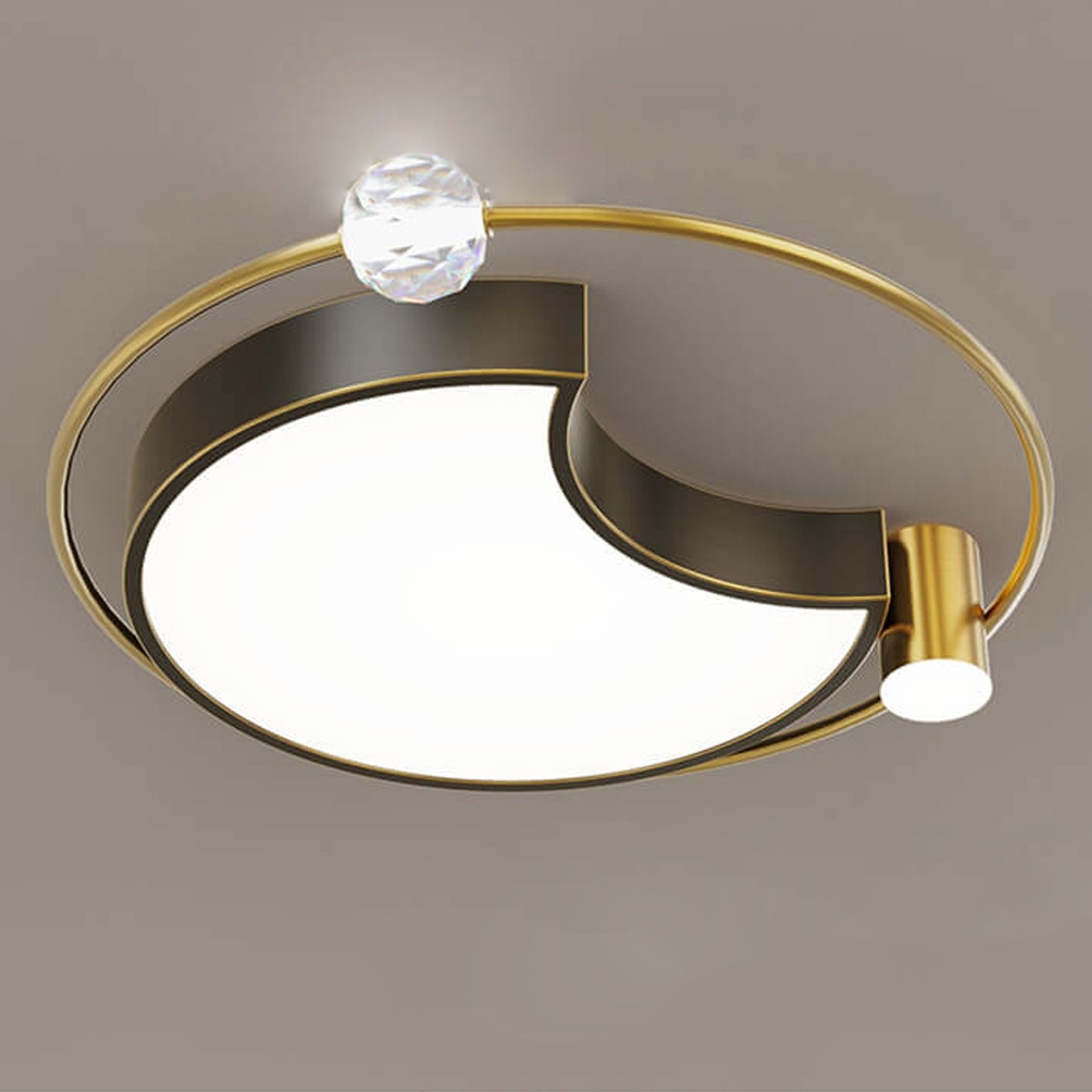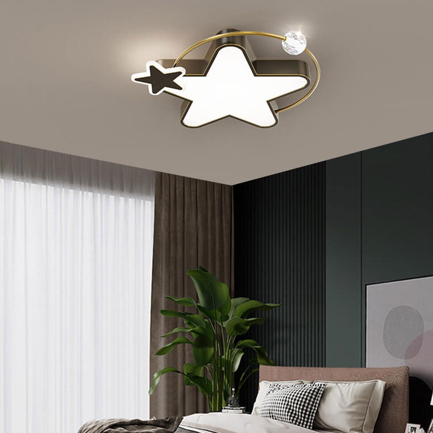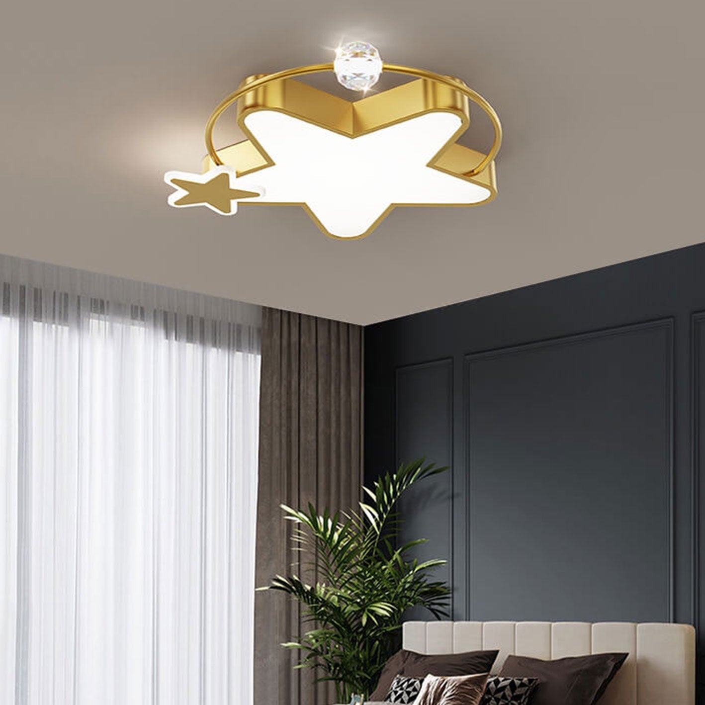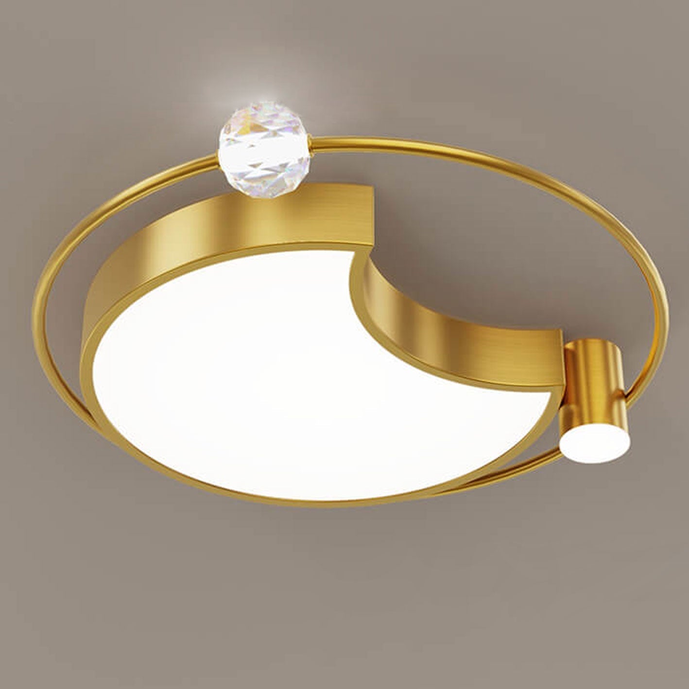 Nordic Luxury Star Moon Copper Crystal LED Flush Mount Ceiling Light