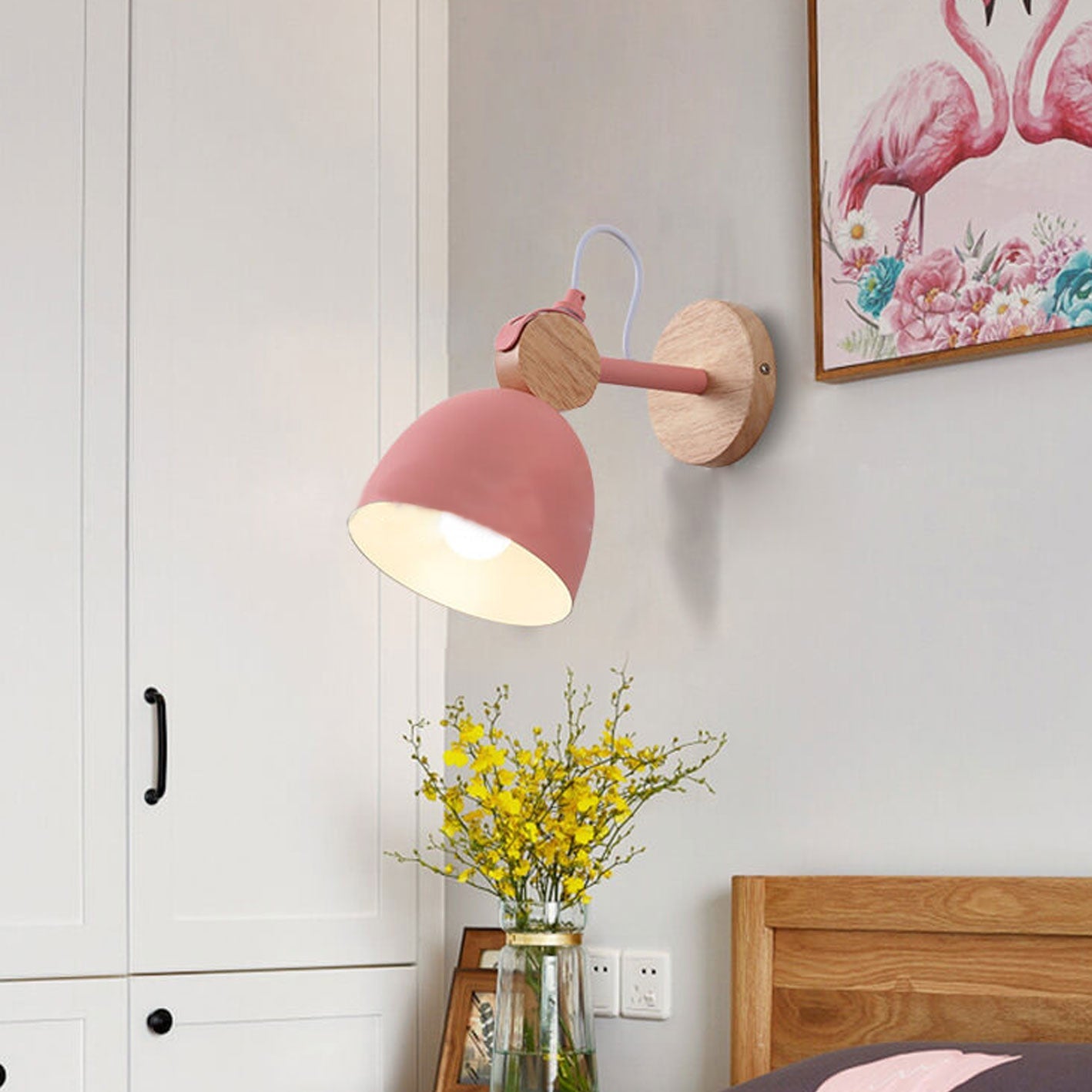 Nordic Macaron Dome Log 1-Light Rotatable Wall Sconce Lamp