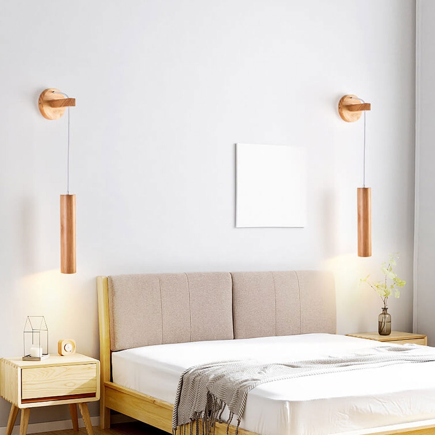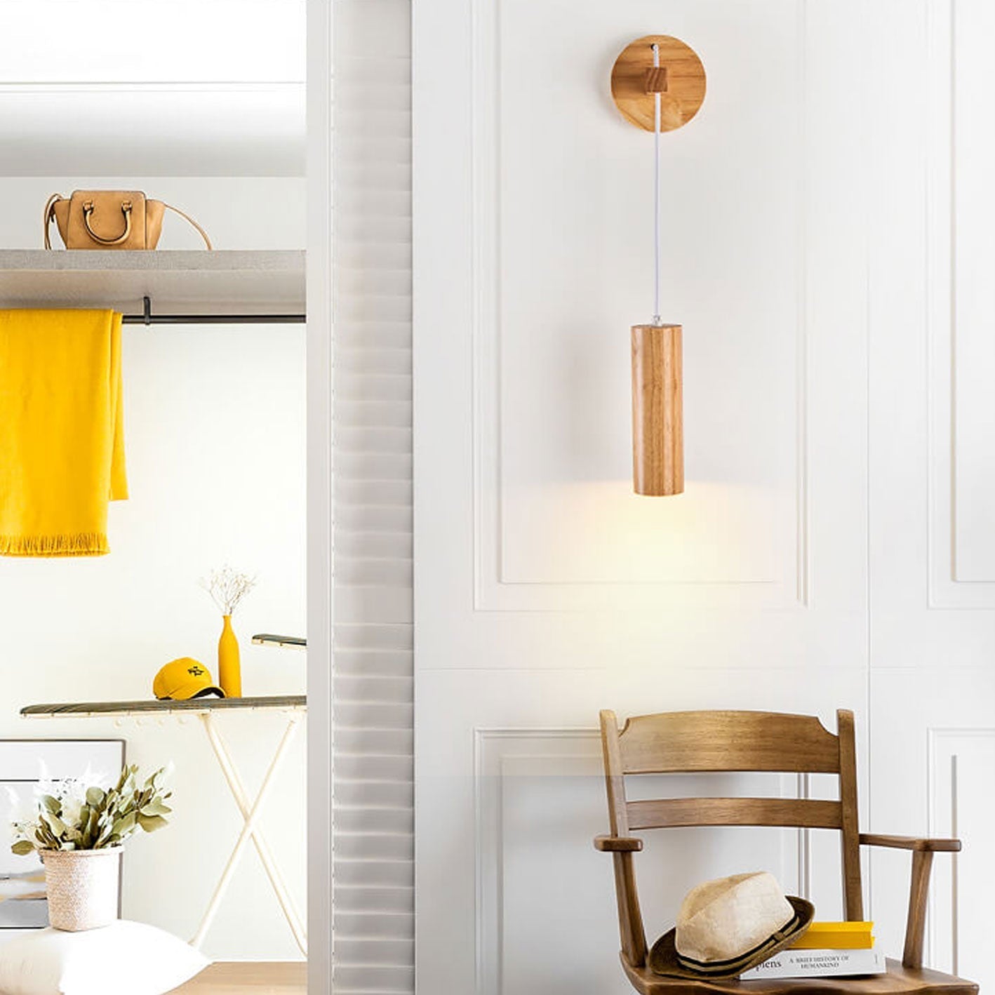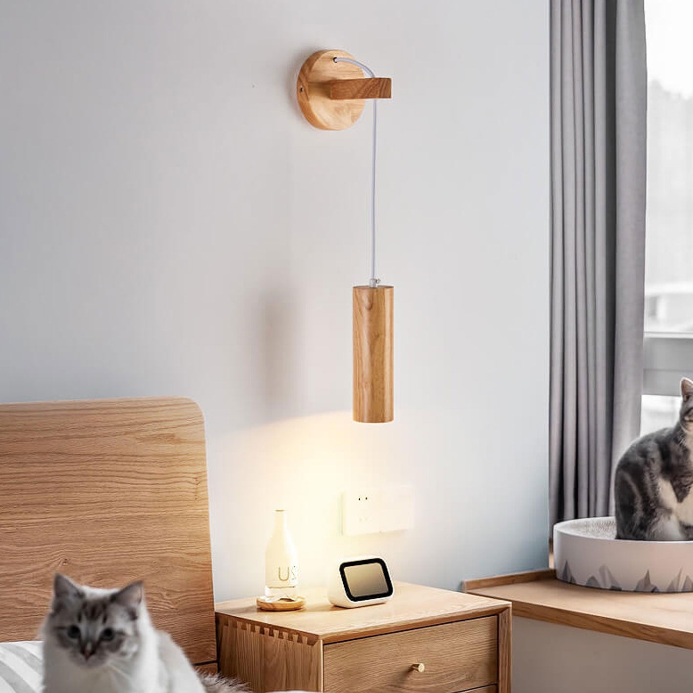 Nordic Minimalist Solid Wood Cylinder Column LED Wall Sconce Lamp