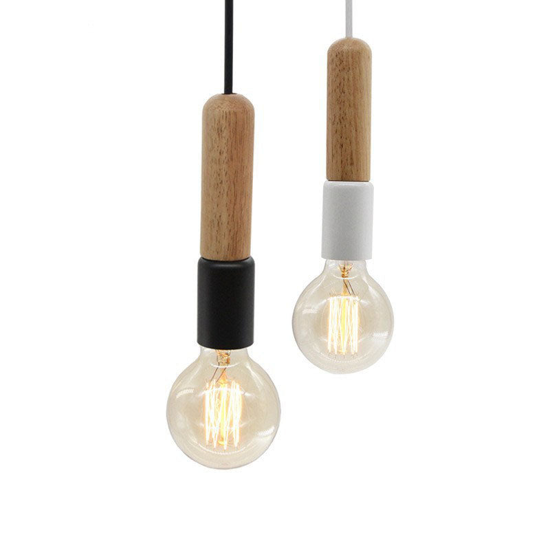 Nordic Minimalist Solid Wood Cylinder Top 1-Light Pendant Light