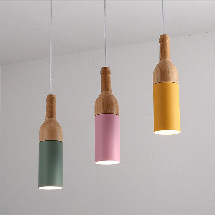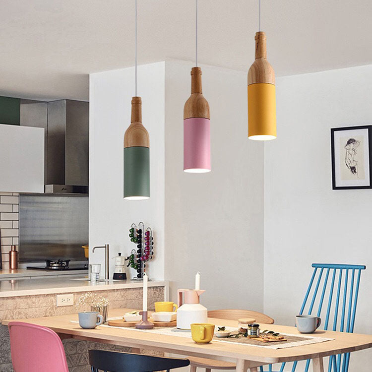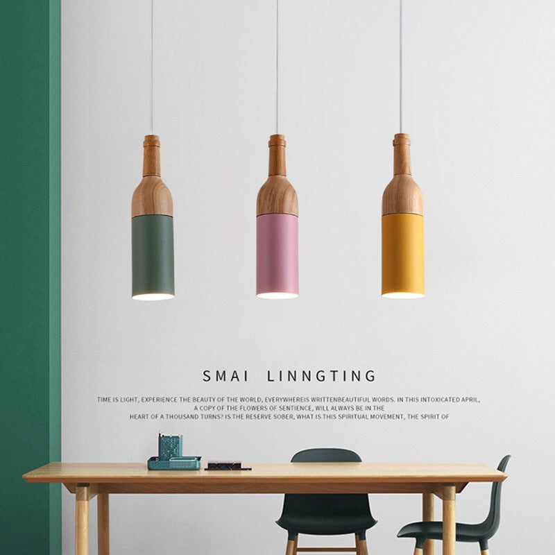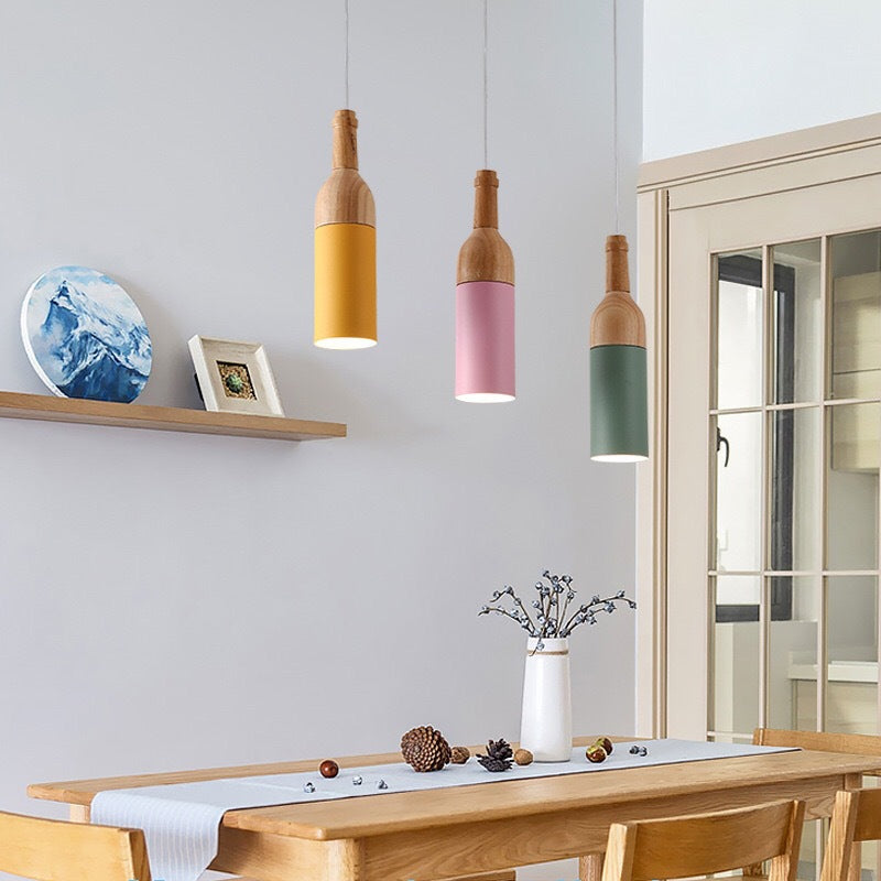 Nordic Modern Minimalist Wine Bottle Aluminum Iron Solid Wood 3-Light Island Light Chandelier