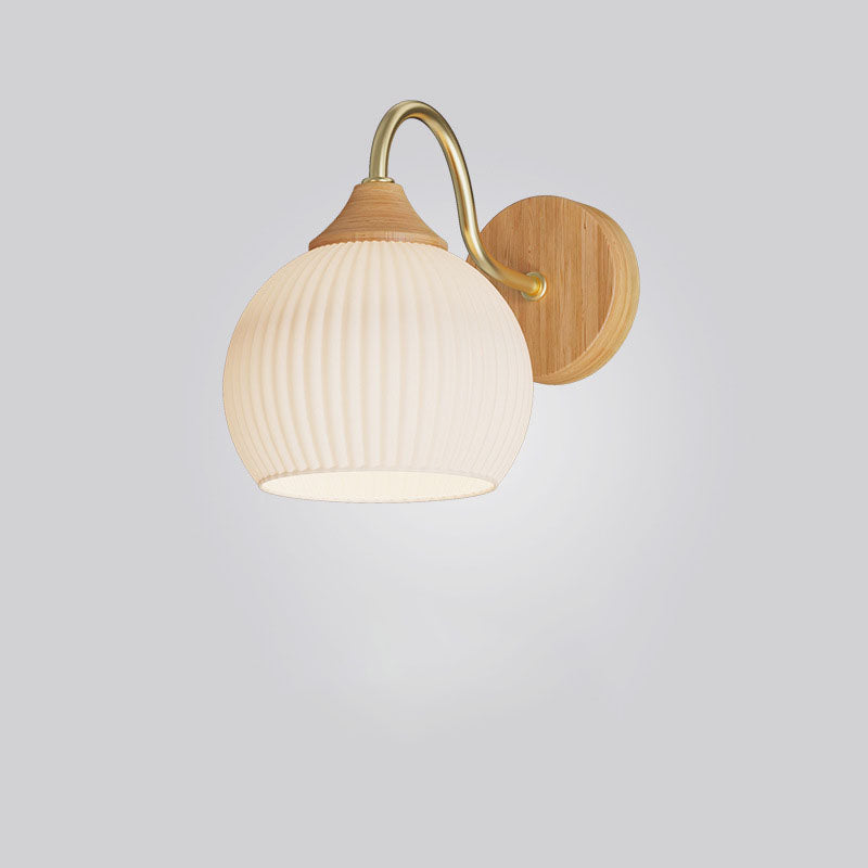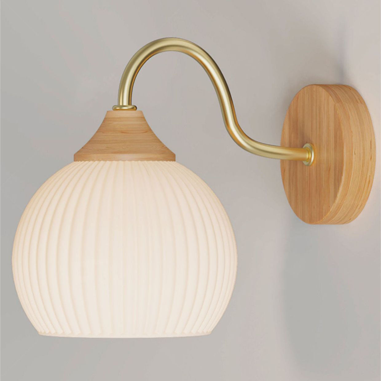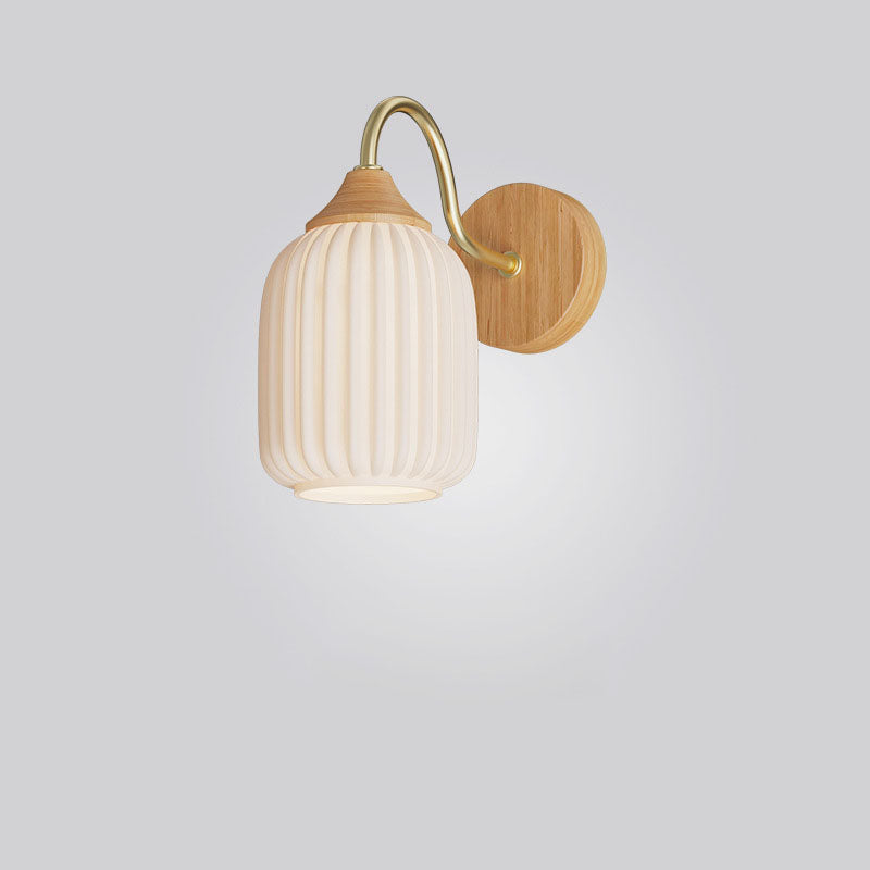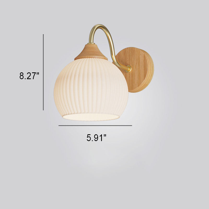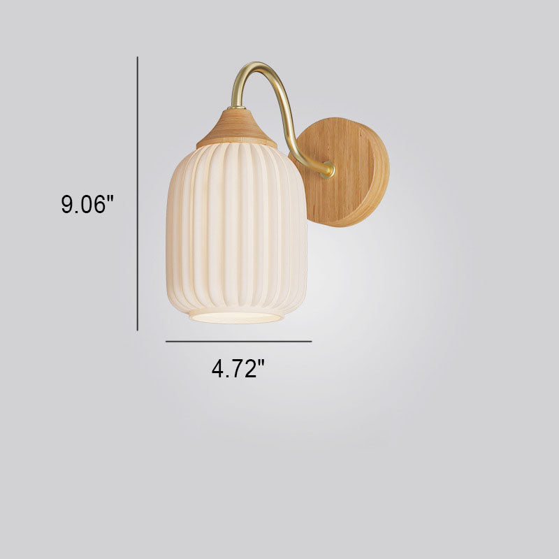 Nordic Striped Glass Round Log Wood 1-Light Wall Sconce Lamp