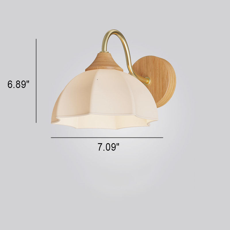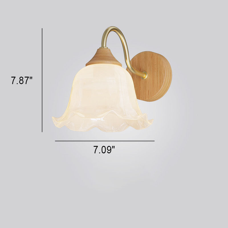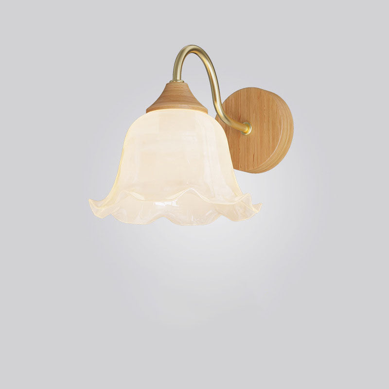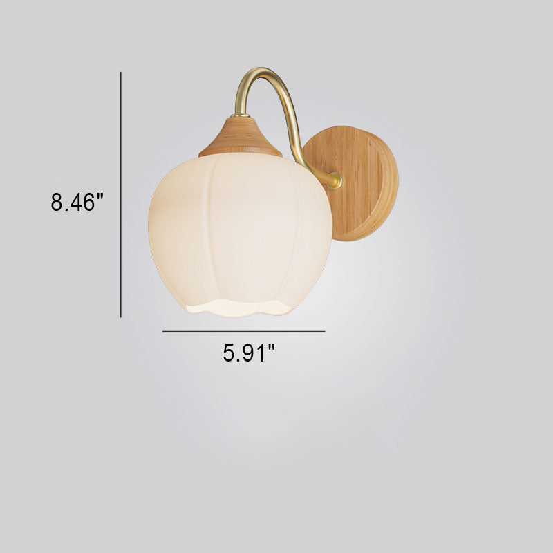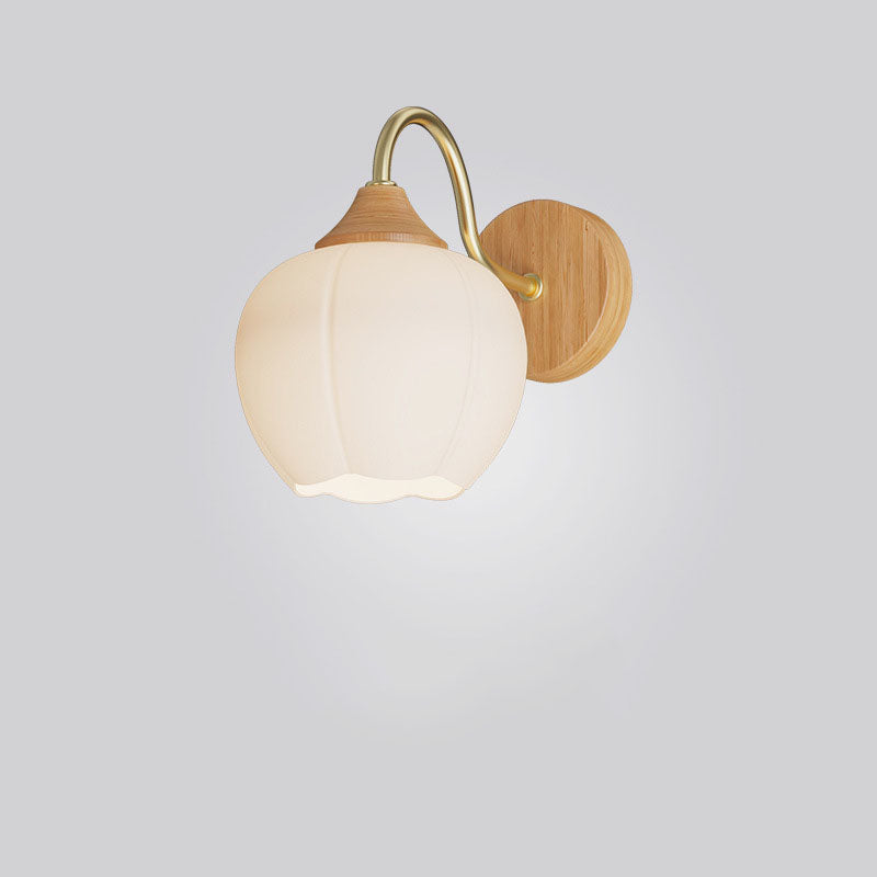 Nordic Striped Glass Round Log Wood 1-Light Wall Sconce Lamp