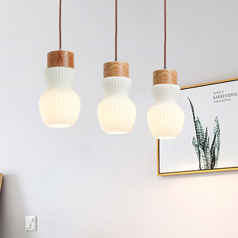 Nordic Striped Milk White Glass Jar 1/3 Light Chandelier
