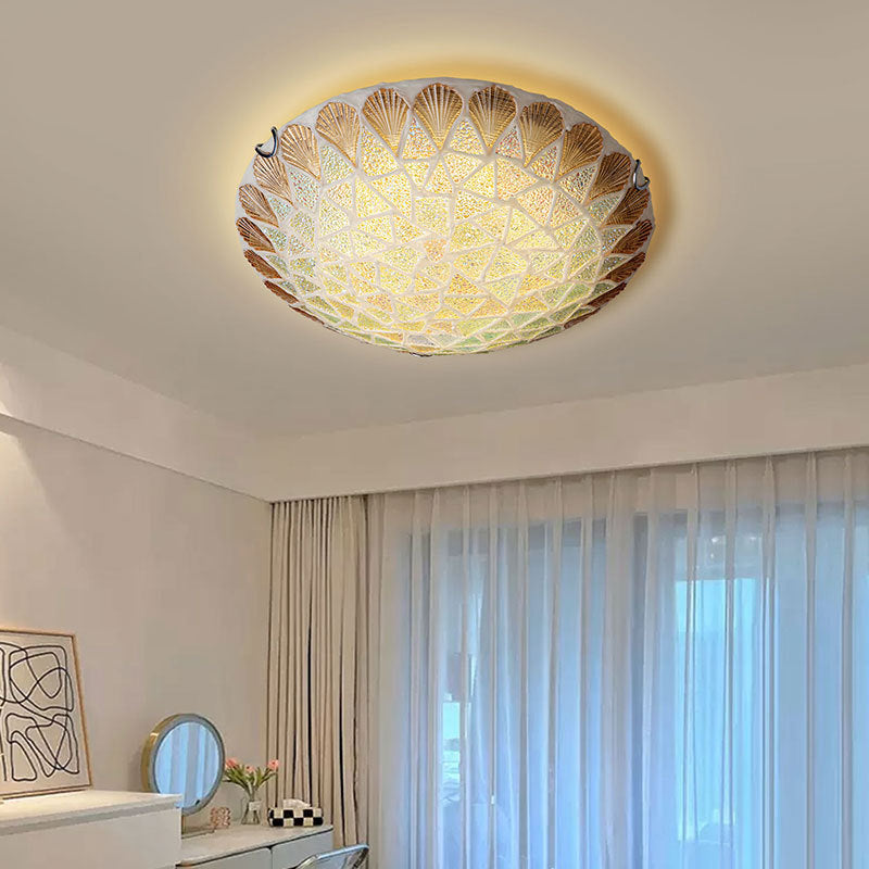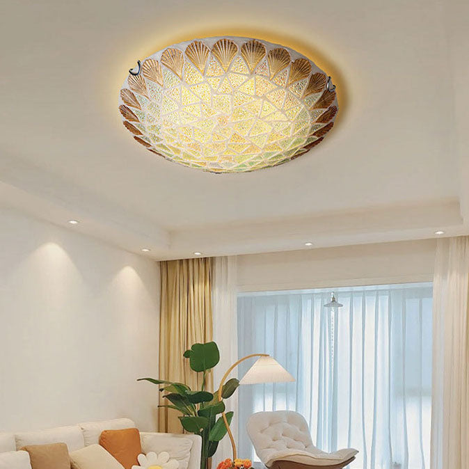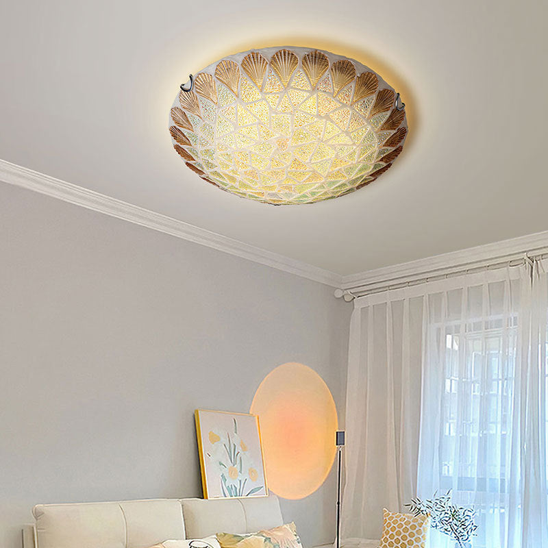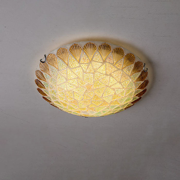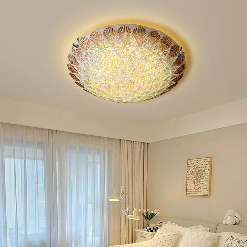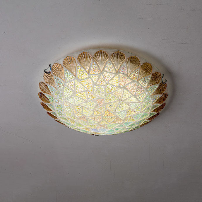 Nordic Vintage Light Luxury Tiffany Shell Glass 1-Light Flush Mount Lighting