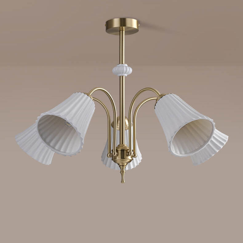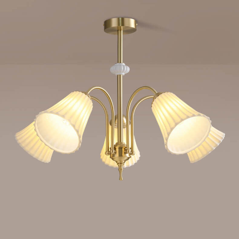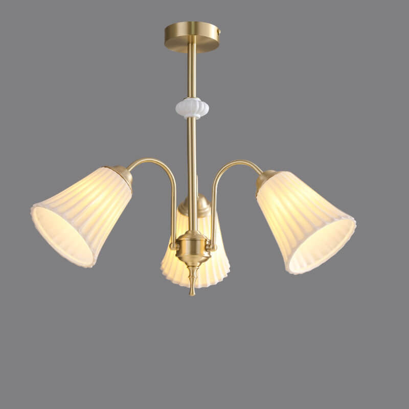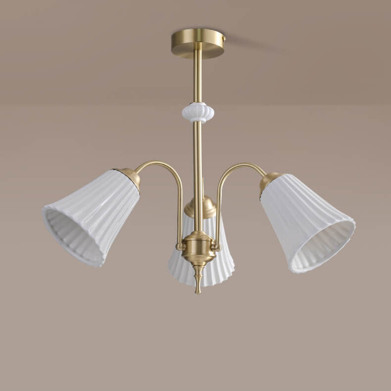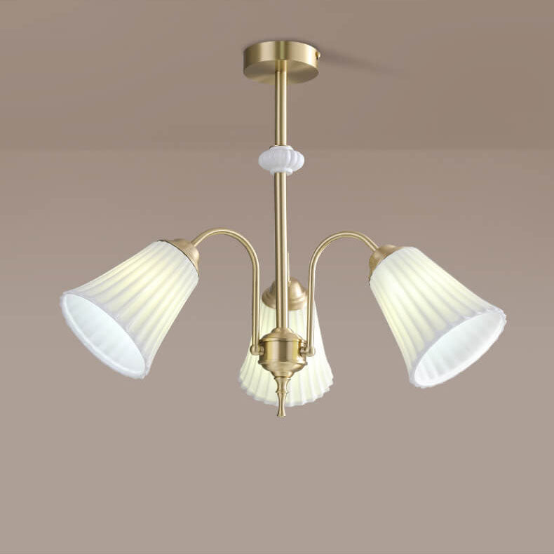 Nordic Vintage White Ceramic Striped Cone 3/5 Light Chandelier
