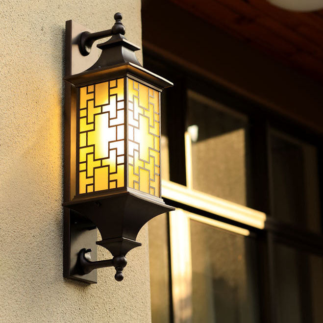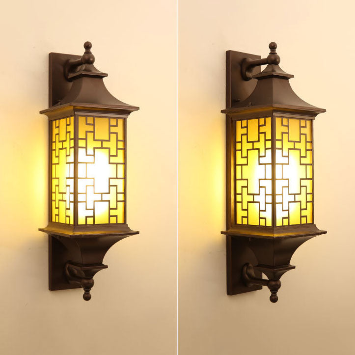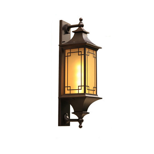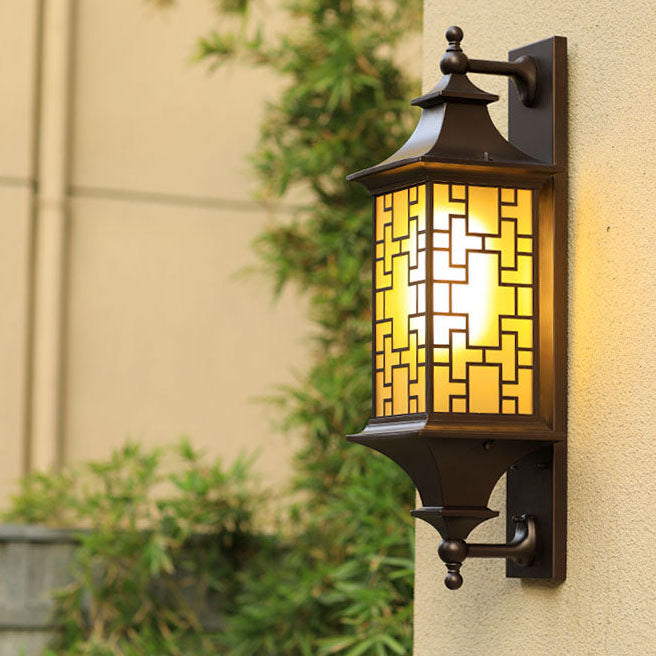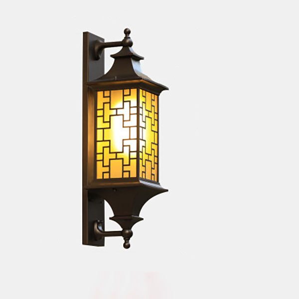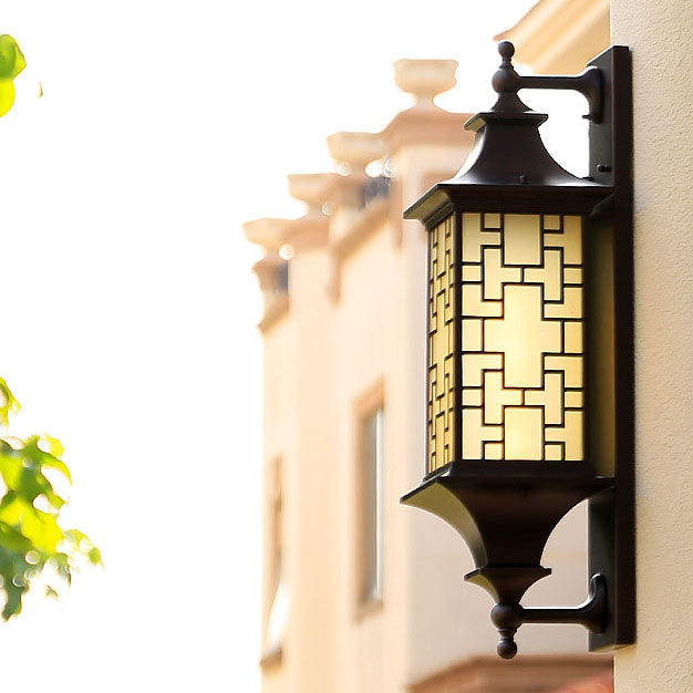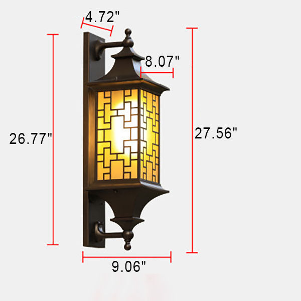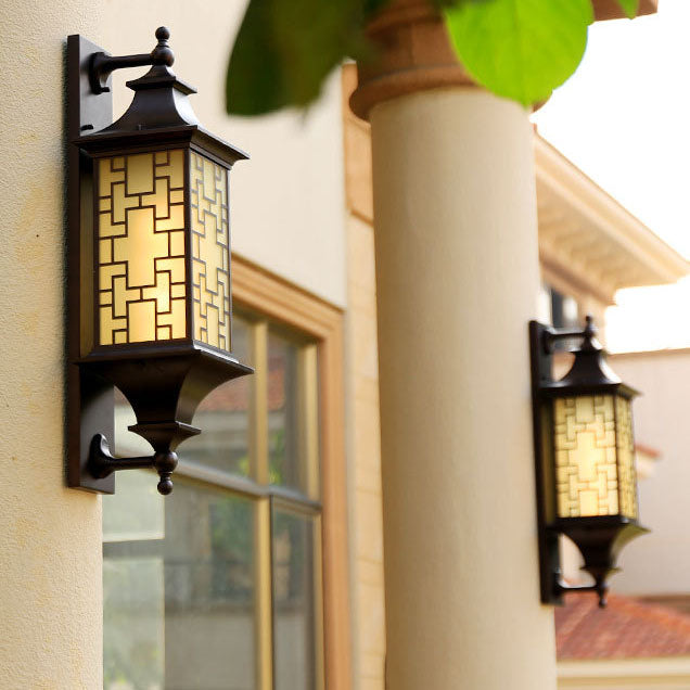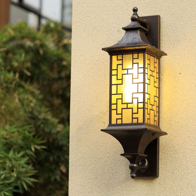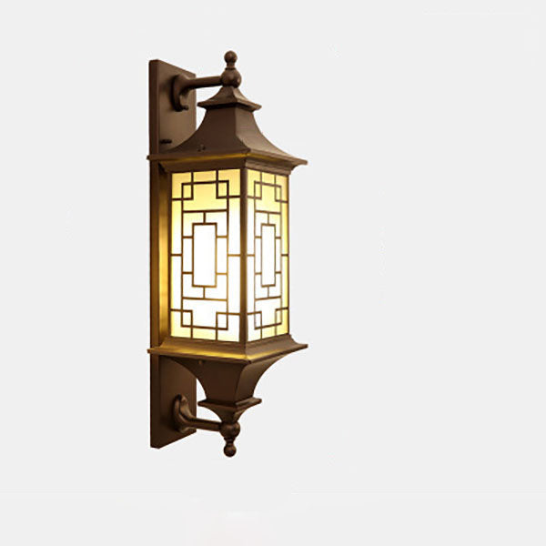 Outdoor Chinese Square Lantern Cage Waterproof 1-Light Wall Sconce Lamp