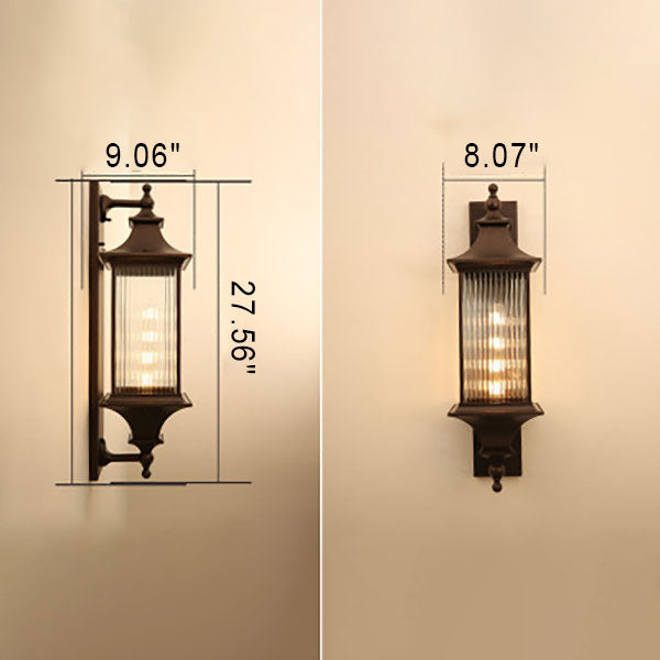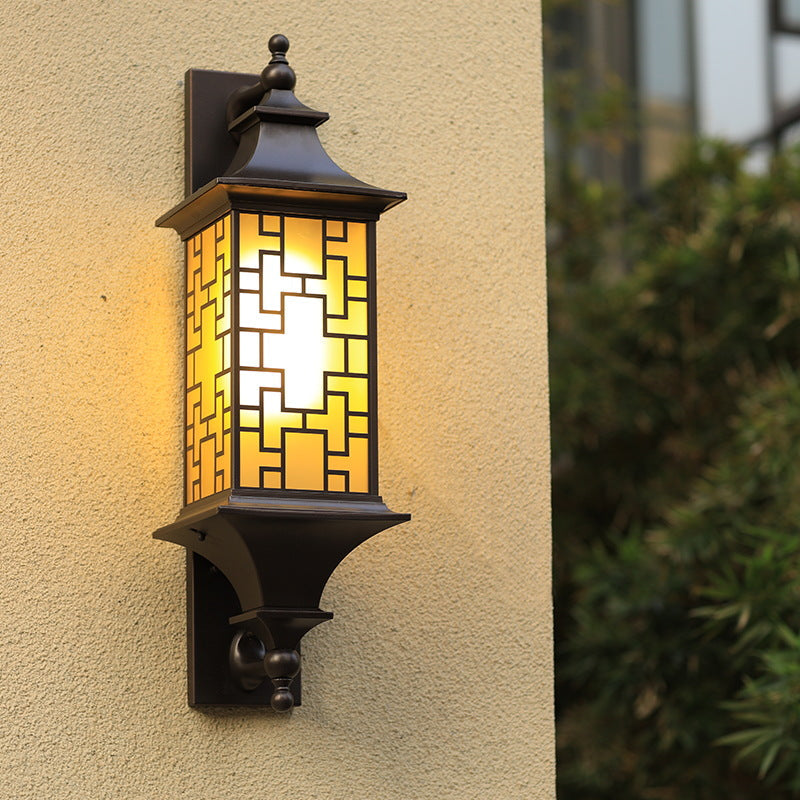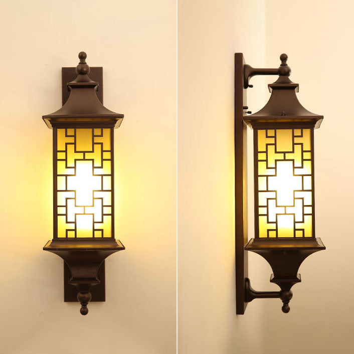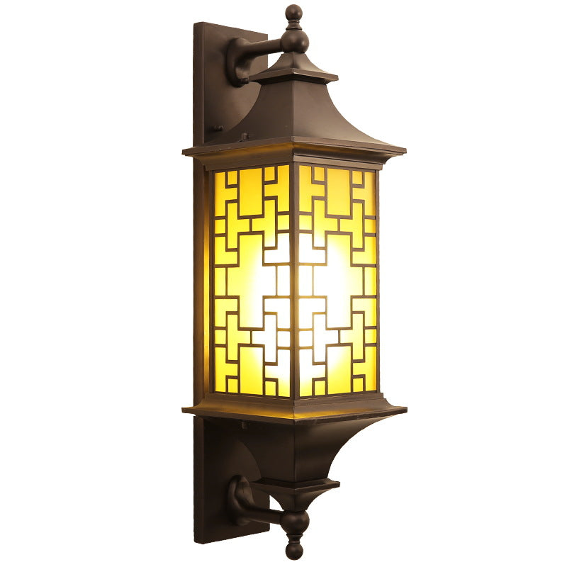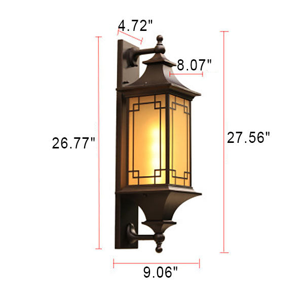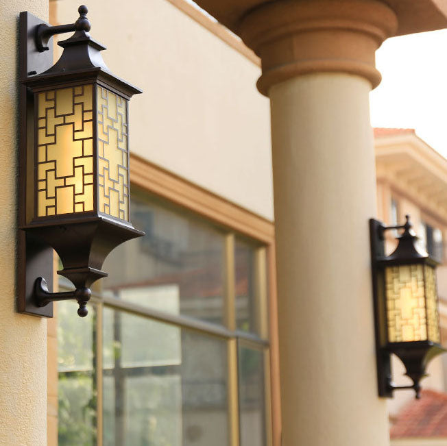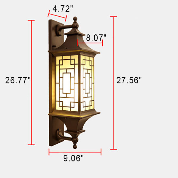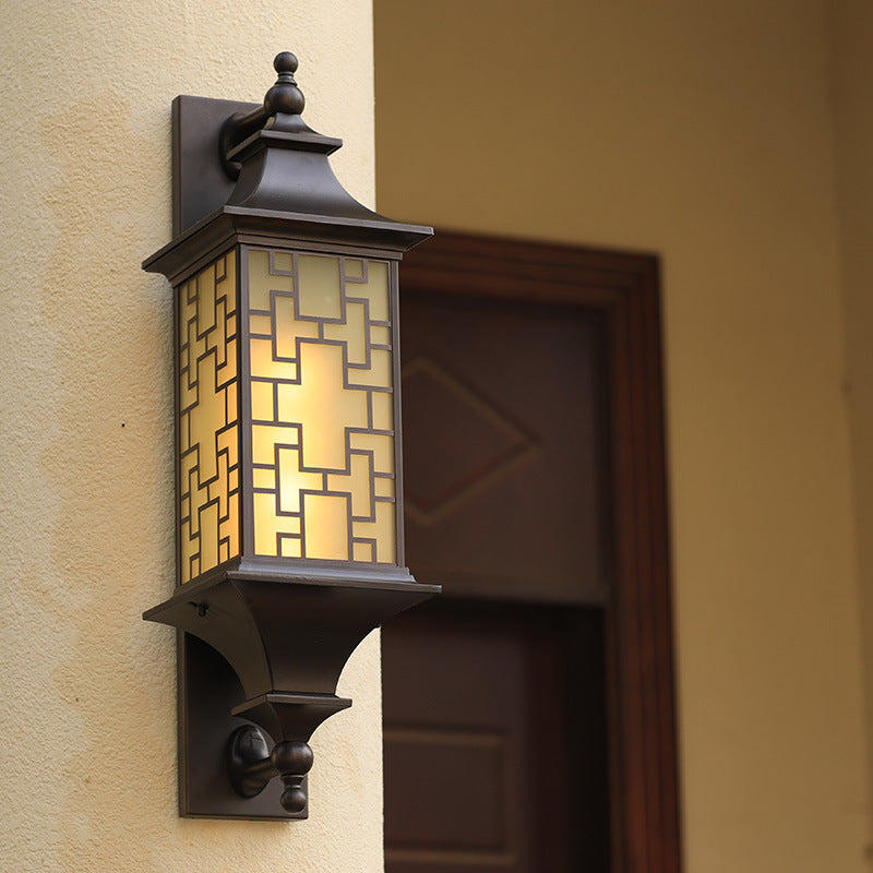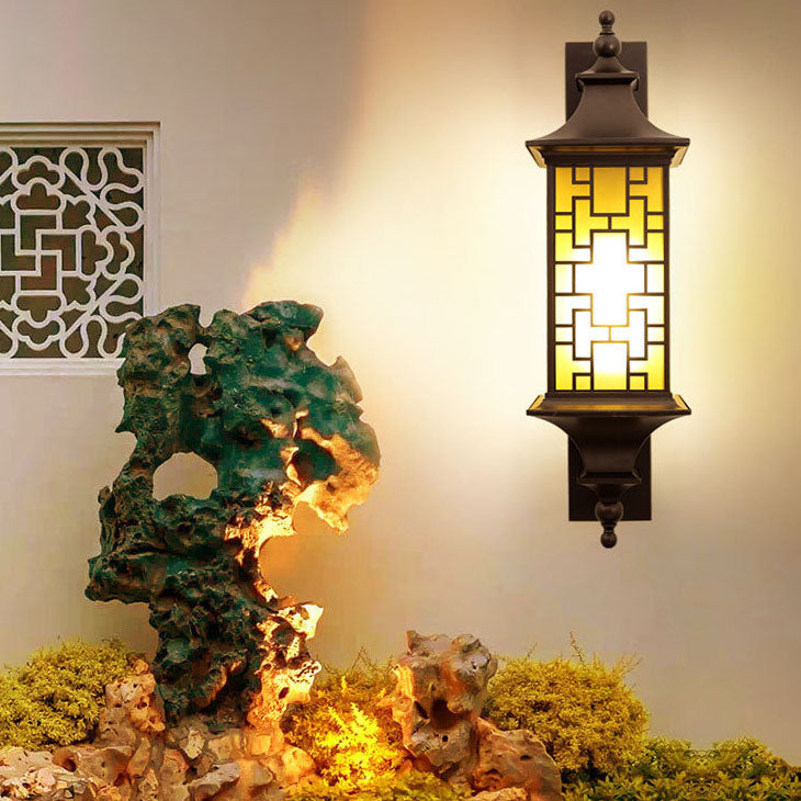 Outdoor Chinese Square Lantern Cage Waterproof 1-Light Wall Sconce Lamp