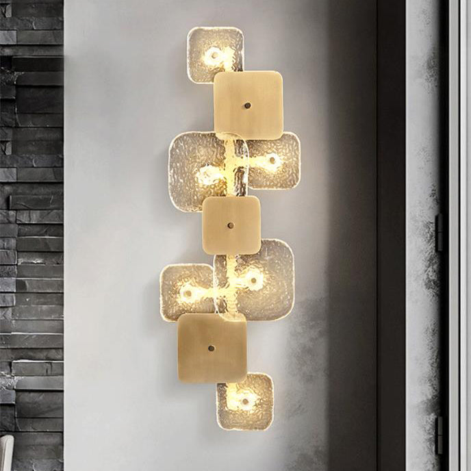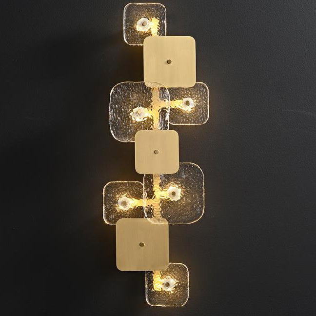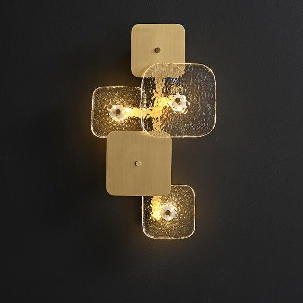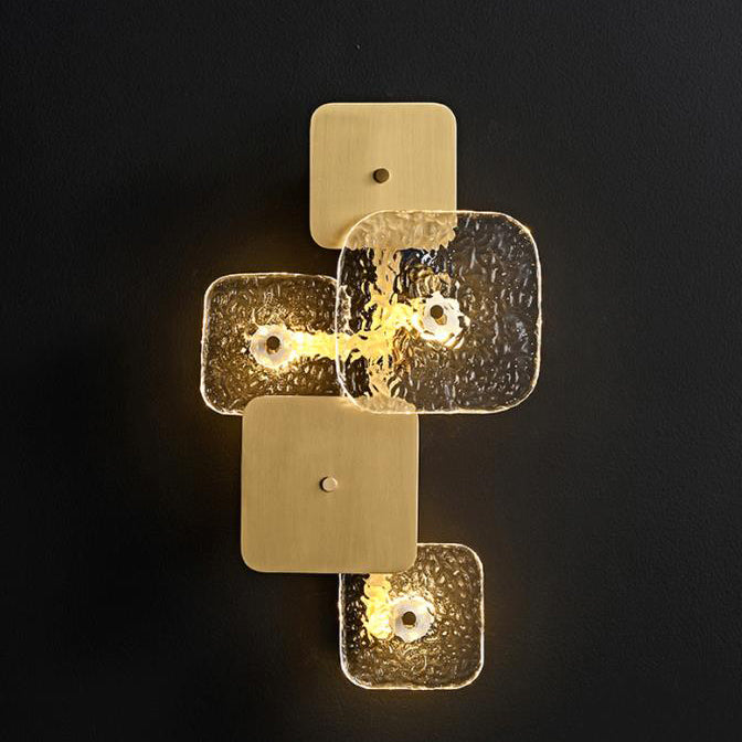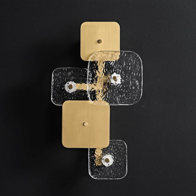 Post-modern Glass Brass Patchwork Square LED Wall Sconce Lamp